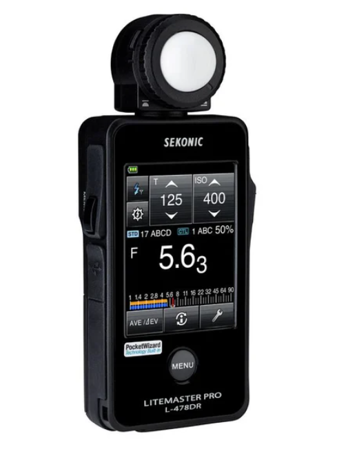 El Sekonic L-478DR es un avanzado exposímetro con pantalla táctil y PocketWizard Control TTL integrado, que ofrece una medición precisa de la luz ambiental y del flash mediante una interfaz LCD a color intuitiva, ideal para fotógrafos y cineastas.