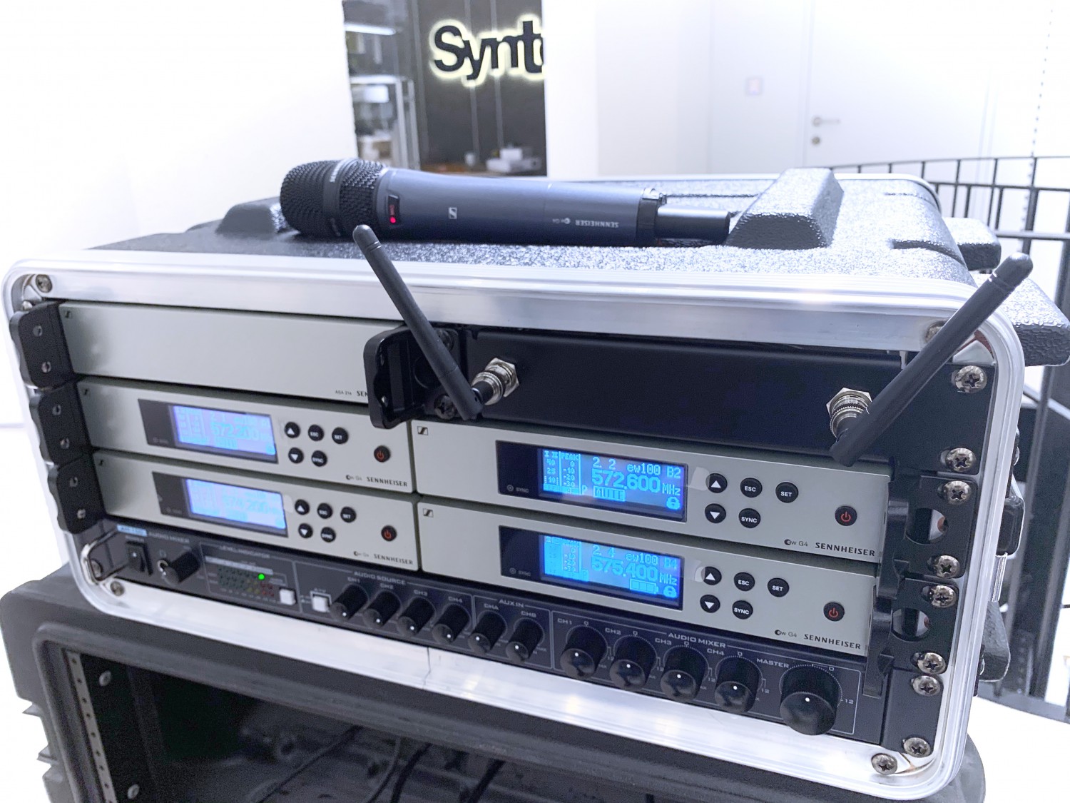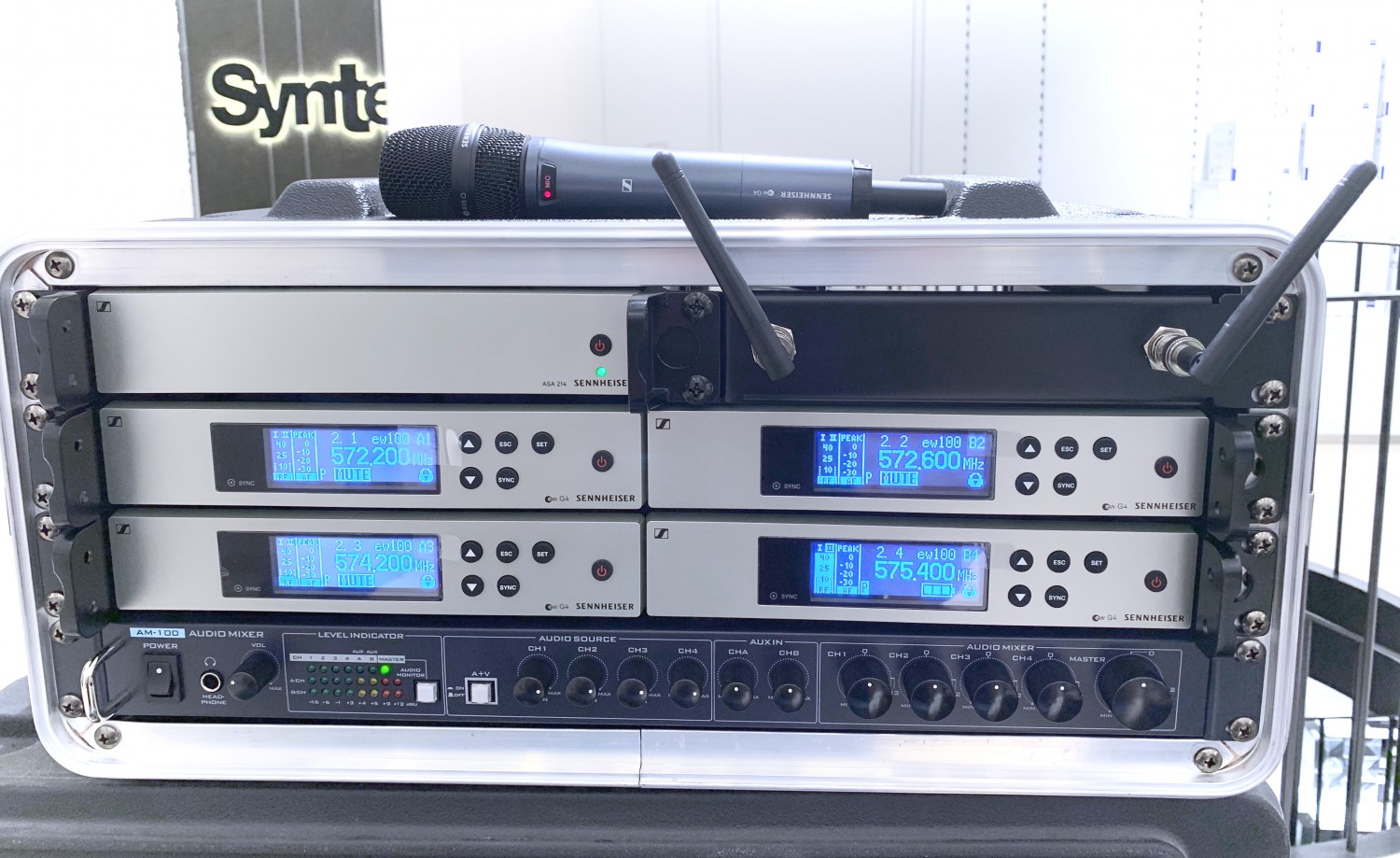 El kit de Sennheiser permite la transmisión de 4 canales independientes. Este sistema móvil es la solución ideal para streaming, presentaciones en línea o pequeños estudios de televisión. El conjunto está compuesto por receptores EM 100 G4 conectados en un kit que permite la configuración sincronizada y la búsqueda rápida de frecuencias libres para todos los…