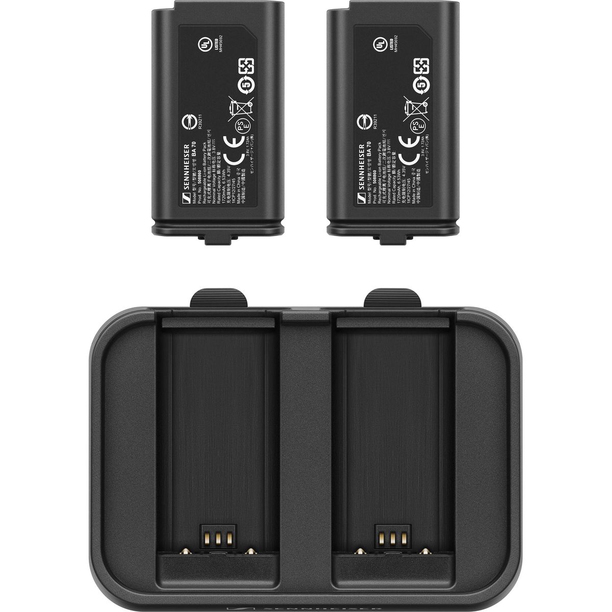 La batería de iones de litio Sennheiser BA 70 puede utilizarse en lugar de 2 pilas