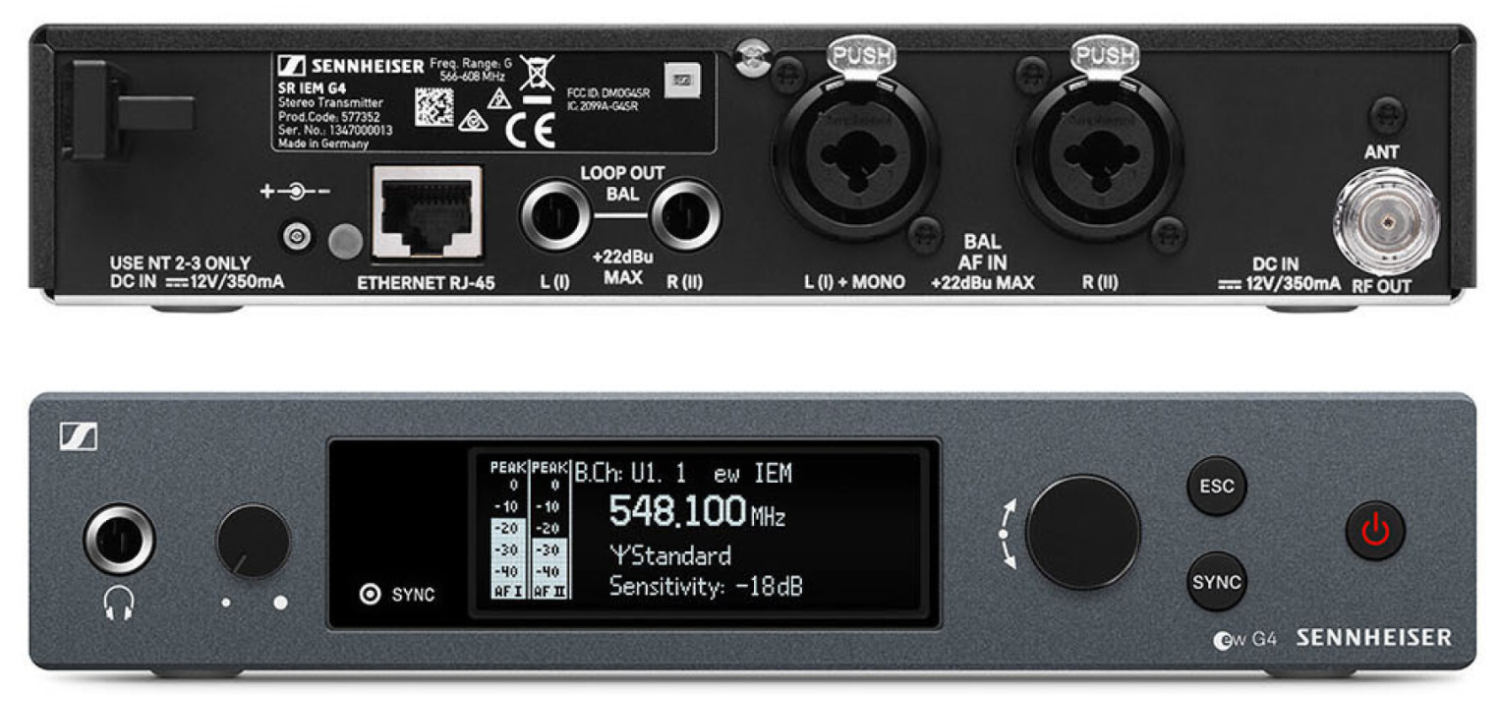 El paquete incluye receptores EK IEM G4 de tipo bodypack, que son ligeros, resistentes y están diseñados para emparejarse sin problemas con los monitores intraauriculares IE 4 y proporcionar un sonido preciso en todo el espectro de frecuencias. La alta potencia de salida de RF (hasta 30 mW, dependiendo del país) garantiza una transmisión fiable a una distancia de hasta 100 metros (300 pies).