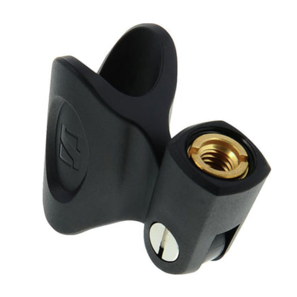 Utilice la abrazadera para micrófono Sennheiser MZQ 800, compatible con los micrófonos MD 42, MD 46 y todos los micrófonos Evolution, para fijar los micrófonos a un soporte estándar con rosca de 5/8". El adaptador ajustable para pie de micrófono sujeta el micrófono para que no tengas que sujetarlo tú, lo que te deja las manos libres y evita el ruido de manipulación.