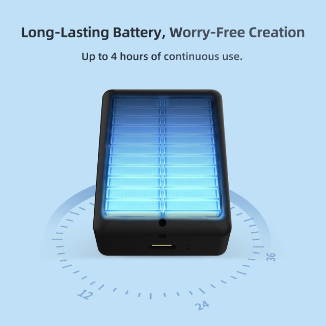 La batería integrada de 1200 mAh ofrece hasta 4 horas de uso continuo, mientras que el alcance del control inalámbrico de 30 metros permite moverse con flexibilidad para controlar el disparador a distancia a través de Bluetooth. El soporte magnético permite fijarlo a trípodes o accesorios para conseguir ángulos de toma creativos. Gracias a la transmisión de baja latencia de 60 ms a través de la banda dual de 2,4 G/5 G, el CP5 Mini2 Blue garantiza un seguimiento fluido y sensible para una producción móvil con calidad profesional.