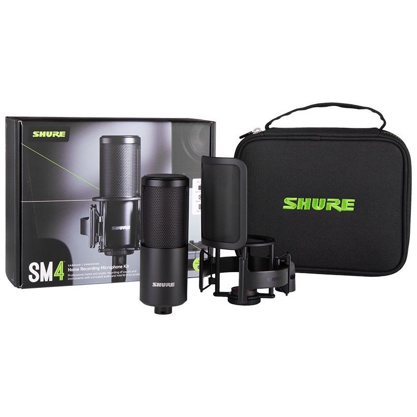Shure SM4, micrófono para grabación doméstica, filtro antipop magnético, soporte antivibraciones, adaptador de micrófono, estuche de transporte con cremallera