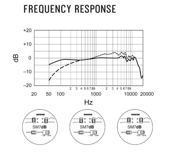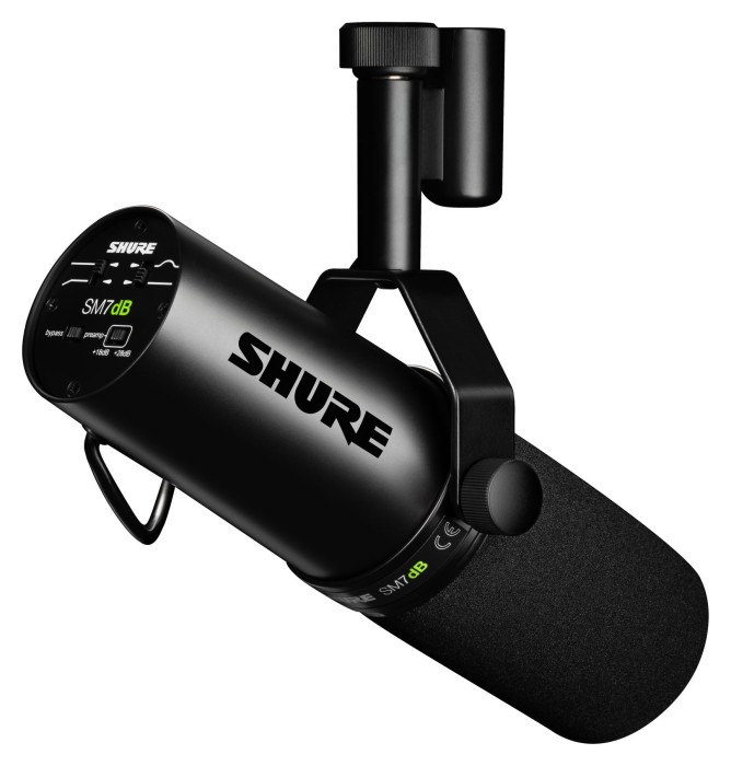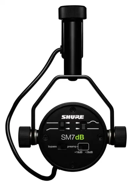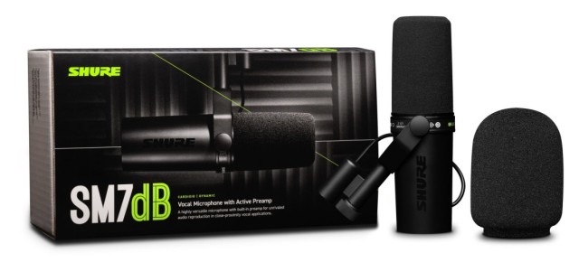 El SM7dB es un micrófono dinámico para voz del fabricante Shure.Su preamplificador integrado proporciona hasta +28 dB de ganancia transparente. El micrófono ofrece un sonido natural, cálido y suave, ideal especialmente para la grabación de voces y palabra hablada. La cubierta antiviento y la sujeción interna del soporte antivibraciones garantizan una reproducción de sonido limpia y consistente. La excelente supresión del zumbido electromagnético, optimizada para el apantallamiento contra las interferencias de banda ancha emitidas por los monitores de ordenador, contribuye a una calidad de sonido excelente.
