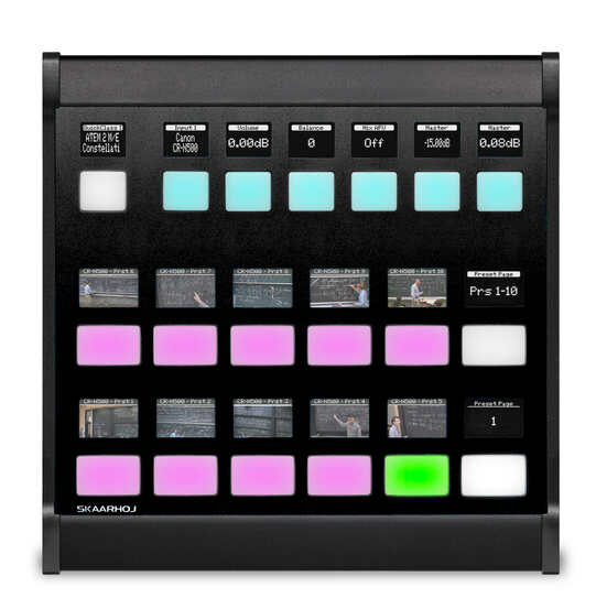 Gracias a la tecnología integrada «Blue Pill Inside», el controlador incluye el potente motor de procesamiento de SKAARHOJ directamente en la unidad. Esto permite una integración perfecta con una amplia gama de dispositivos y sistemas de terceros, así como el acceso a la interfaz web Reactor para la configuración, la supervisión y la personalización del sistema. La unidad también se puede ampliar conectándola a otros paneles SKAARHOJ, como los controladores Master Key, para configuraciones más avanzadas.