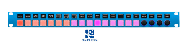 El SKAARHOJ Rack Pro 3 con Blue Pill Inside es una superficie de control compacta de 1RU para montaje en rack, equipada con botones NKK de alta calidad y codificadores OLED retroiluminados, diseñada para entornos de producción y retransmisión con múltiples dispositivos y de ritmo acelerado.