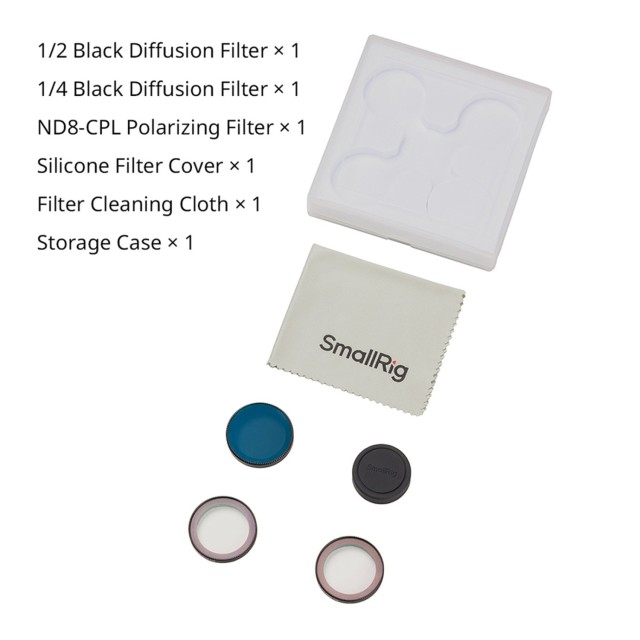 El kit de filtros difusores SmallRig 1/2 Black Diffusion & 1/4 Black Diffusion & ND8-CPL Polarizing Filter Kit para DJI Osmo Nano 5789 está especialmente diseñado para el DJI Osmo Nano. Este kit incluye un filtro difusor negro de 1/2, un filtro difusor negro de 1/4 y un filtro polarizador ND8-CPL.