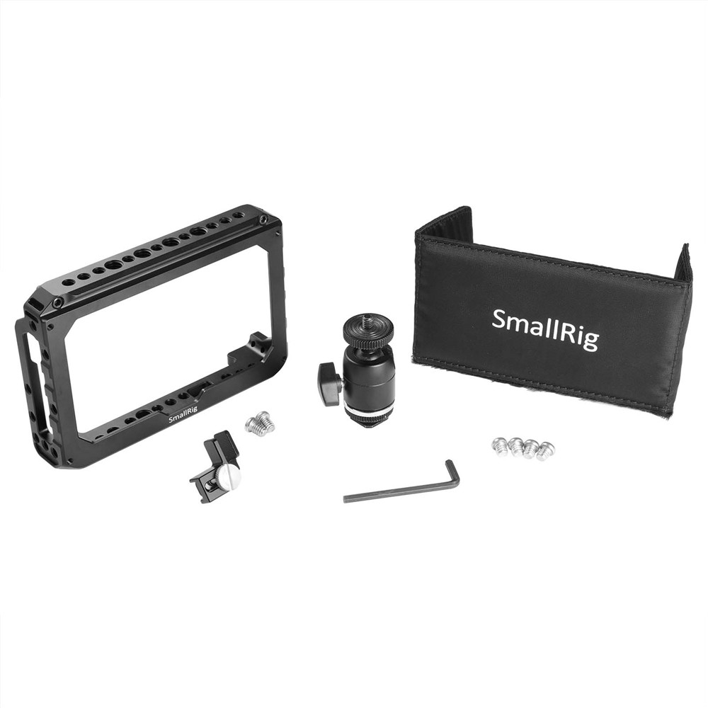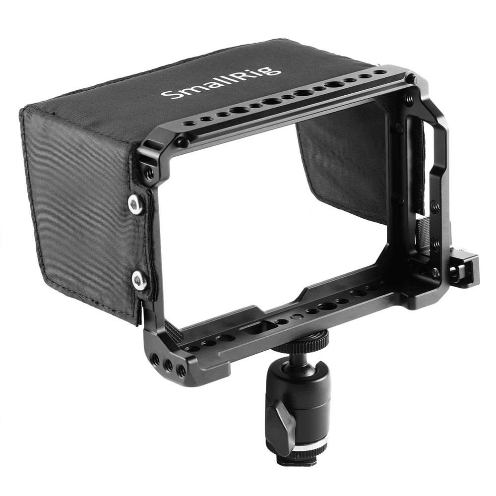 El kit de accesorios SMALLRIG Monitor Cage 1981 es una jaula para monitor de 5 pulgadas con parasol. Es una forma estupenda de proteger tu monitor Blackmagic Video Assist. Fabricada en aluminio mecanizado por CNC, la jaula es bastante ligera y resistente, y te permitirá seguir accediendo a todas las funciones del monitor. Incluye numerosos orificios roscados de 1/4”-20 y 3/8”-16 para ofrecer múltiples opciones de fijación. Cuenta con un riel NATO integrado y antitorsión en la parte superior para acoplar directamente accesorios estándar NATO. Incluye una abrazadera HDMI para proteger el puerto HDMI de tu cámara. Además, añadir un parasol es perfecto para evitar la luz solar directa y garantizar una buena visibilidad de la imagen en la pantalla. Por otra parte, ofrecemos también una rótula de bola para monitor SmallRig 1875 para facilitar el montaje.
