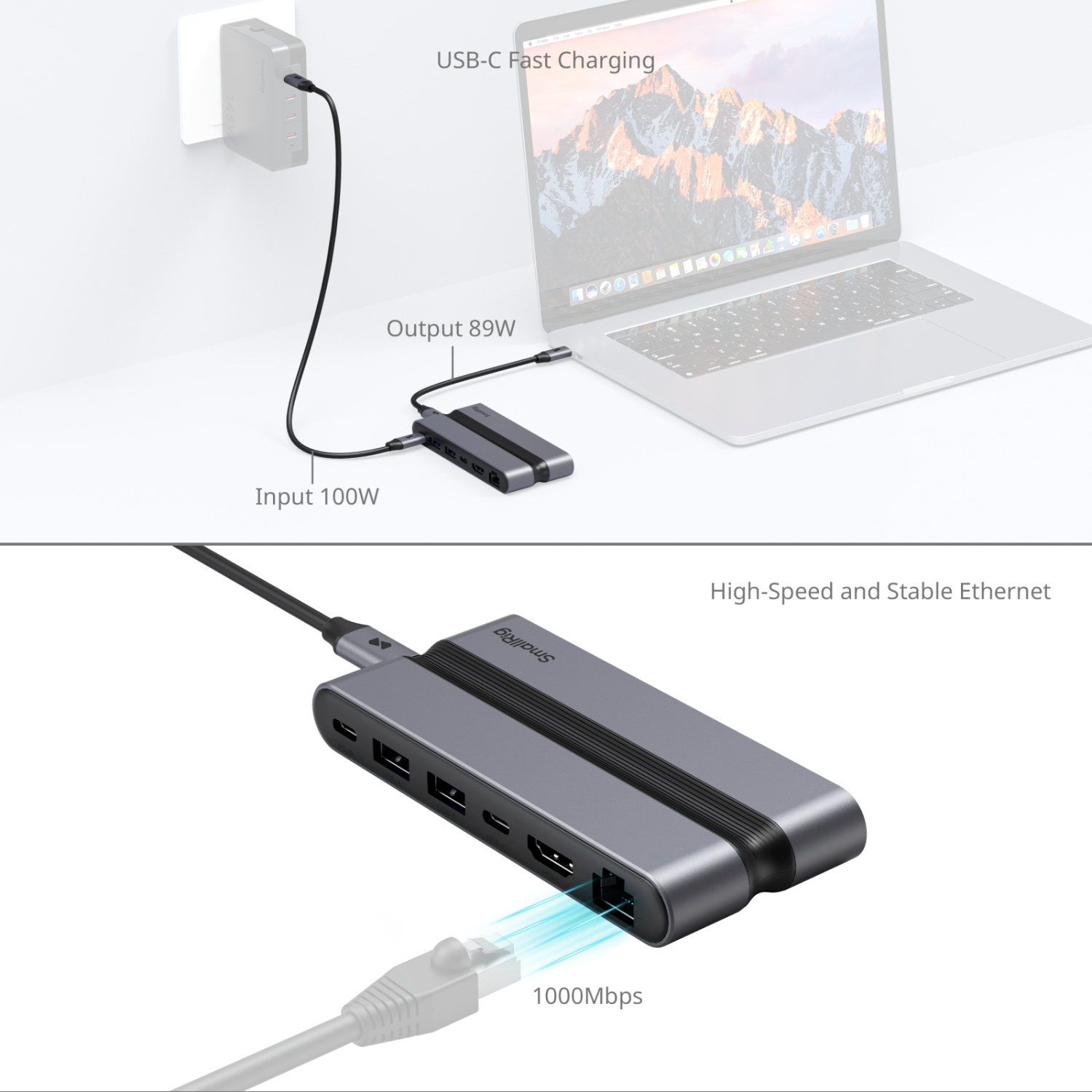 1. Estación de acoplamiento 9 en 1: USB-A / USB-C / HDMI / Gigabit Ethernet, ideal tanto para el trabajo como para el ocio.
