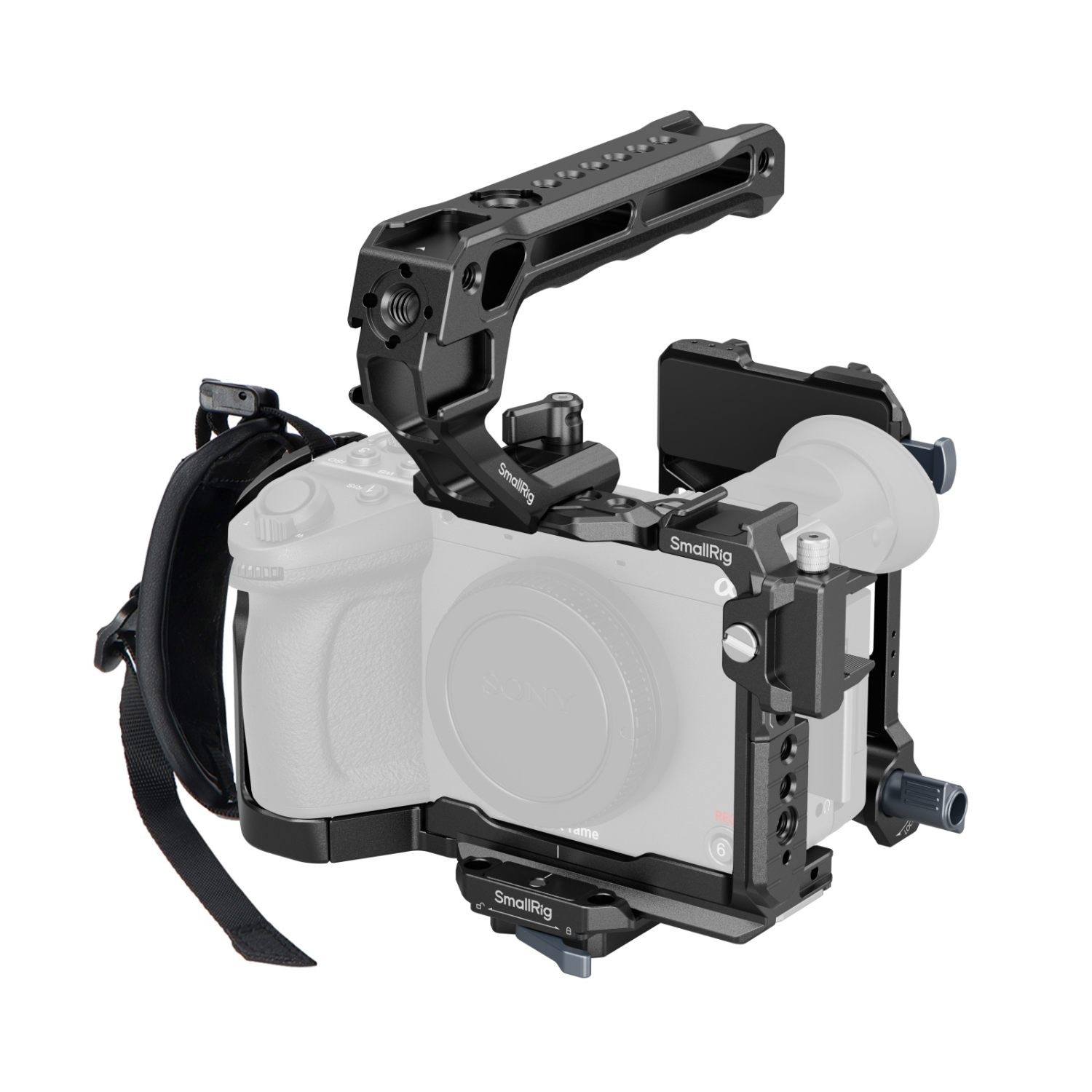 Barra NATO extraíble (placa superior): Compatible con la empuñadura superior XLR de Sony o la empuñadura superior giratoria de SmallRig (ID 4152) para un control fluido del EVF
