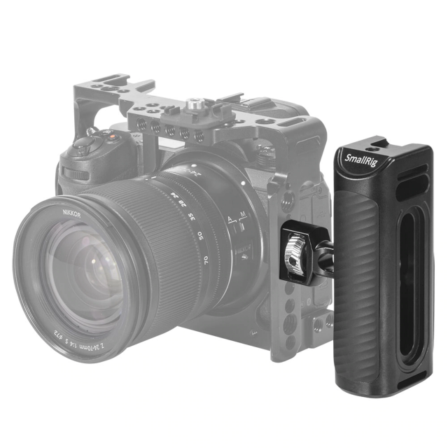 La empuñadura lateral de aluminio SmallRig Arri HSS2426 está diseñada para permitir a los cámaras grabar cómodamente a mano alzada. Mediante la llave hexagonal integrada en la parte inferior, la empuñadura se puede ajustar hacia arriba y hacia abajo según sus necesidades. Si desea utilizar la empuñadura en el otro lado de la jaula, retire la pieza metálica de unión de la empuñadura con la llave hexagonal y cambie la orientación. La empuñadura se puede montar en jaulas para cámaras con orificios laterales para Arri. Se suministra con una base y tres orificios roscados de 1/4"-20 que permiten montar accesorios. Pesa solo 226 g y cuenta con un cuerpo de aluminio con superficie de gel de silicona antideslizante, lo que garantiza una filmación a mano alzada cómoda y sencilla. Para mayor seguridad, esta empuñadura también se puede utilizar con una correa de mano.