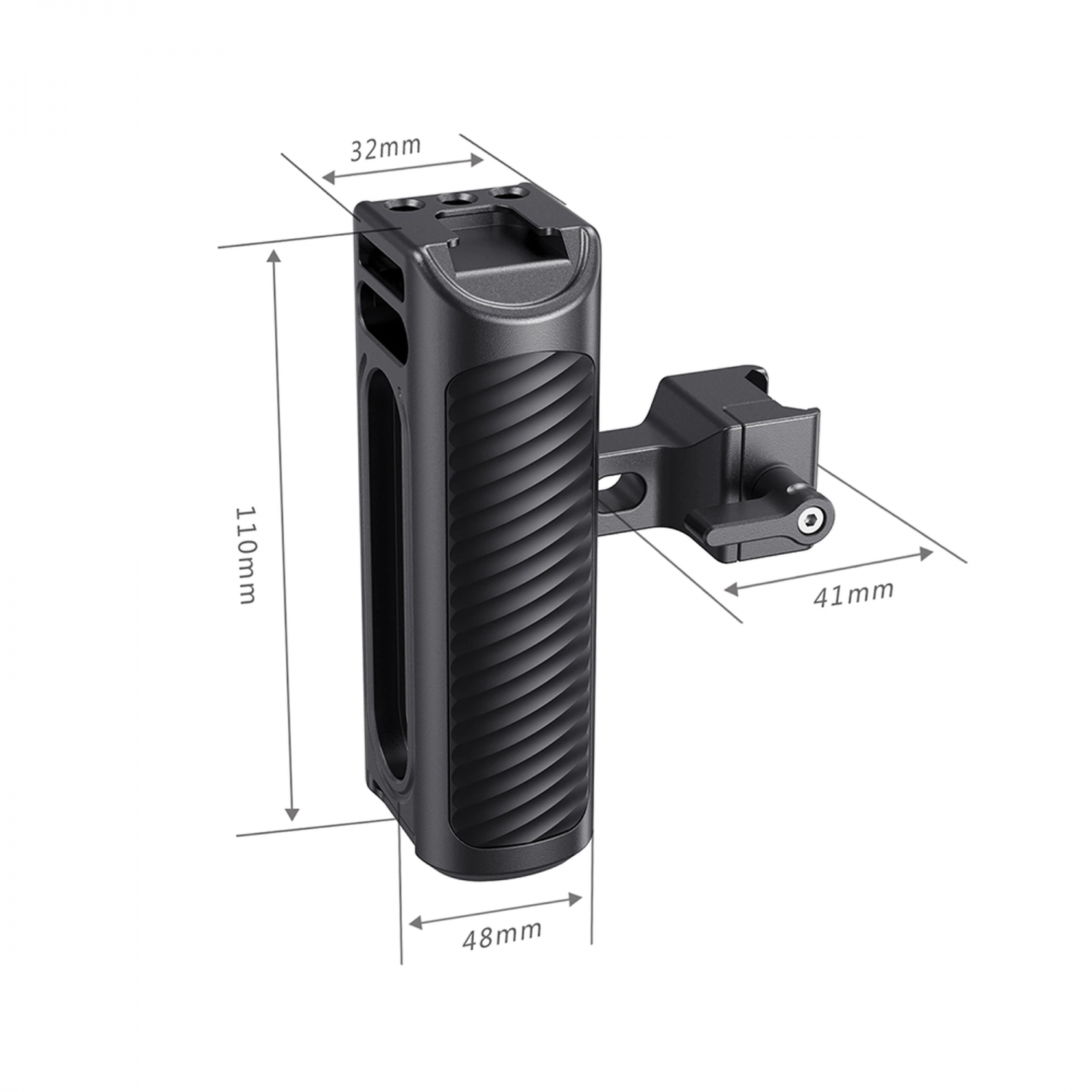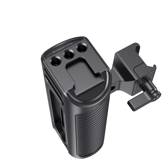 3. Apto para todas las jaulas con riel NATO en cada lado. Orificios de montaje y zapata cold shoe en la parte superior del mango para fijar accesorios