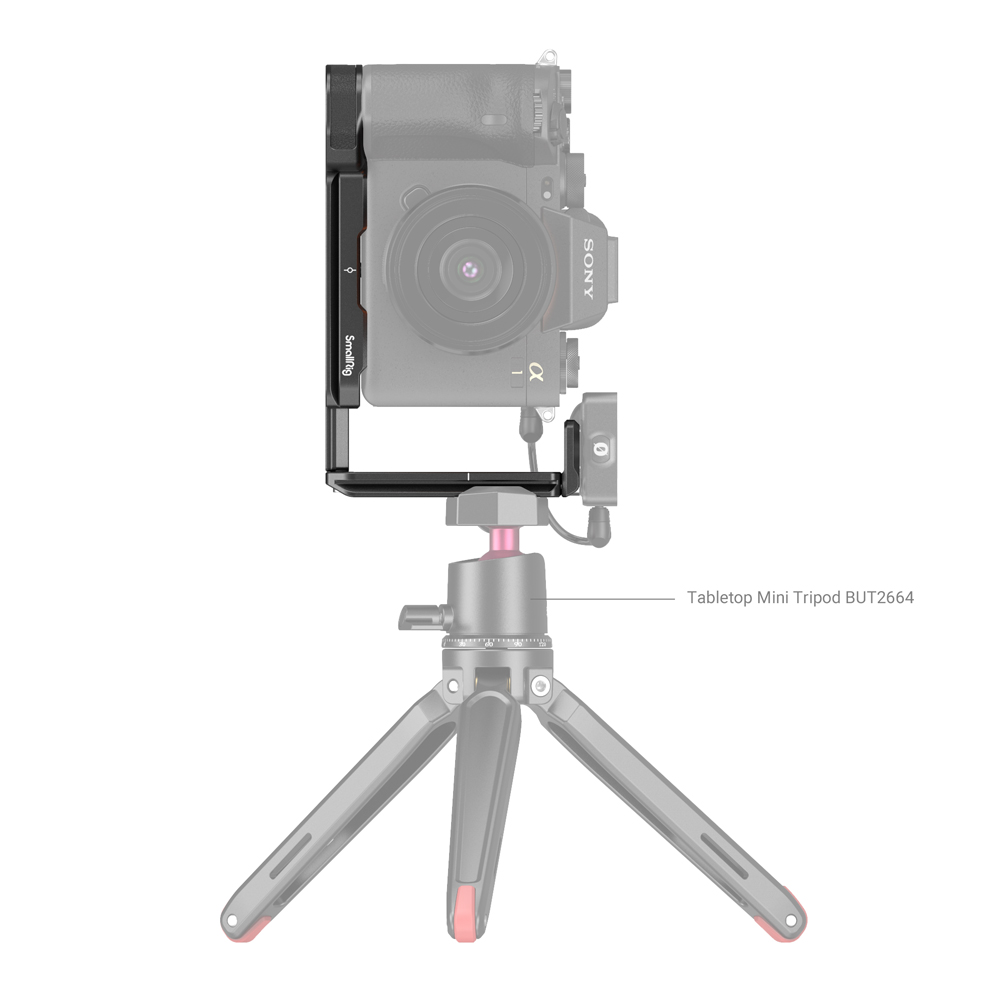 2. Soporte Arca L para determinadas cámaras Sony. La placa lateral se puede deslizar hacia delante para aprovechar la pantalla abatible