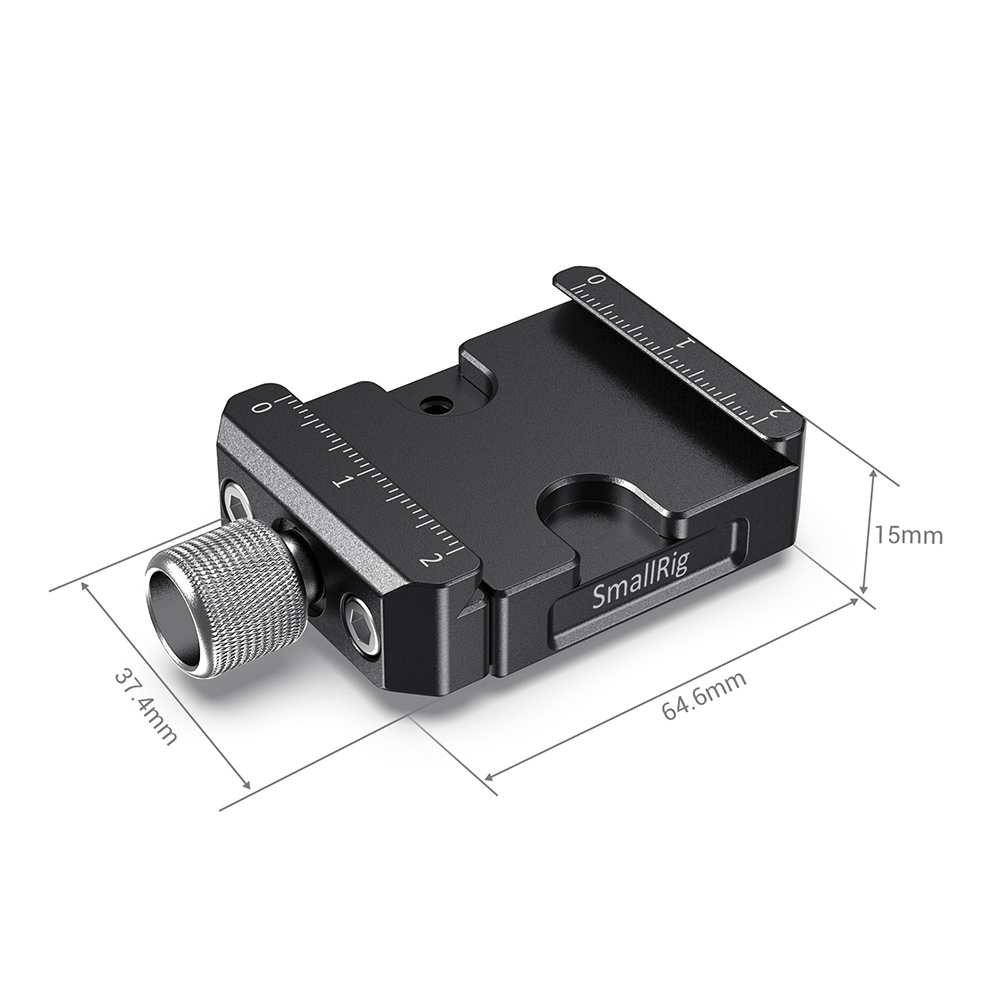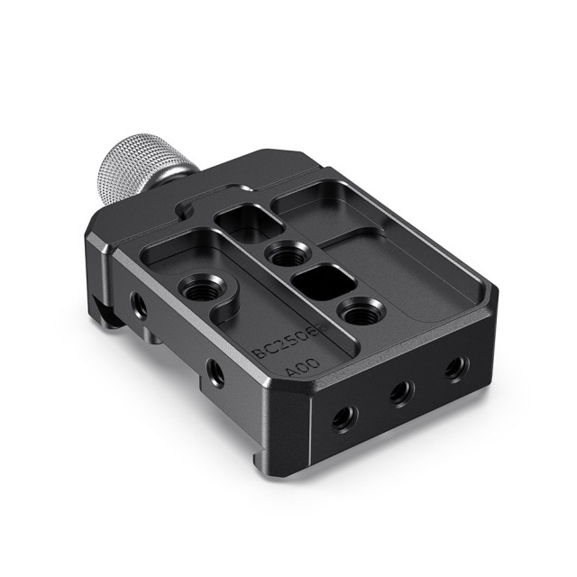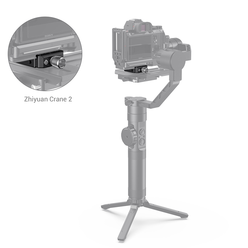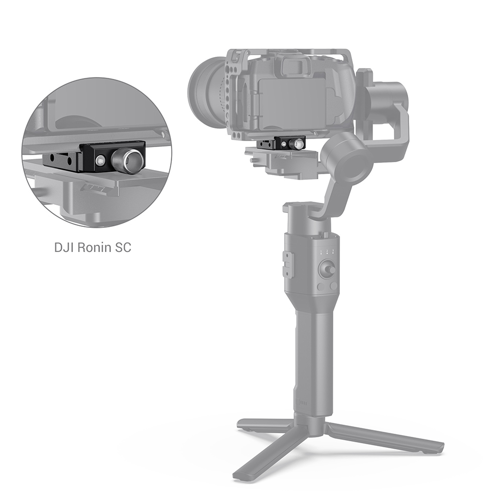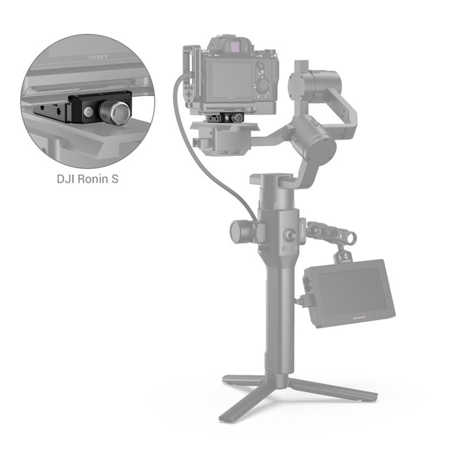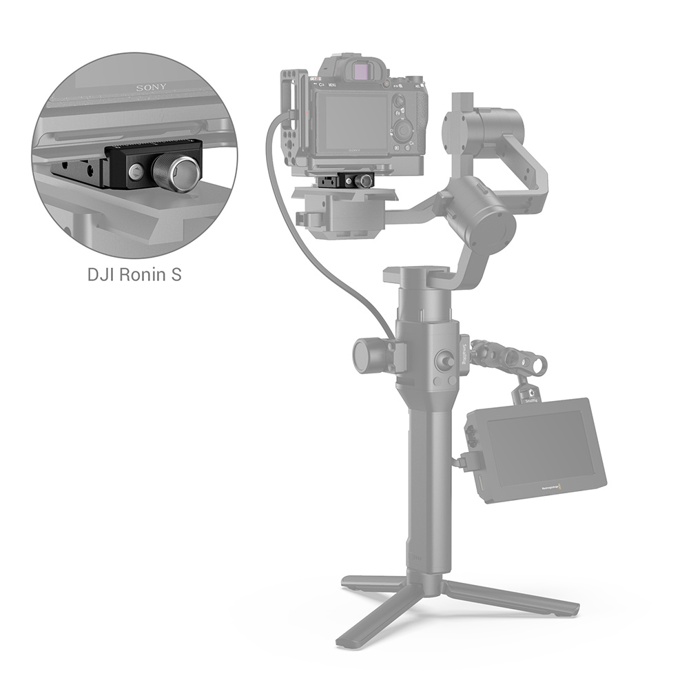 La abrazadera de fijación rápida Arca de SmallRig para los gimbals DJI Ronin S/Ronin SC y ZHIYUN Crane Series/Weebill S (DBC2506) está diseñada para retirar rápidamente la cámara utilizando un soporte Arca L o una placa Arca de un cabezal de fluidos tipo Arca en el gimbal. La abrazadera se fija a la placa de la cámara cardán mediante dos tornillos de 1/4"-20, tanto en sentido vertical como horizontal. Está equipada con marcas graduadas y una rosca M4 para el motor Follow Focus de DJI Ronin S/Ronin SC. Si se utiliza un objetivo de gran diámetro, también se puede emplear como placa de elevación.