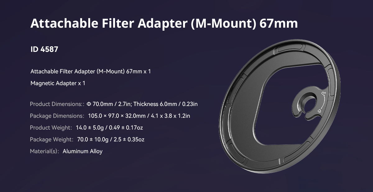 7. Compatible con las videocámaras móviles SmallRig que admiten la instalación de un anillo adaptador magnético de 67 mm.