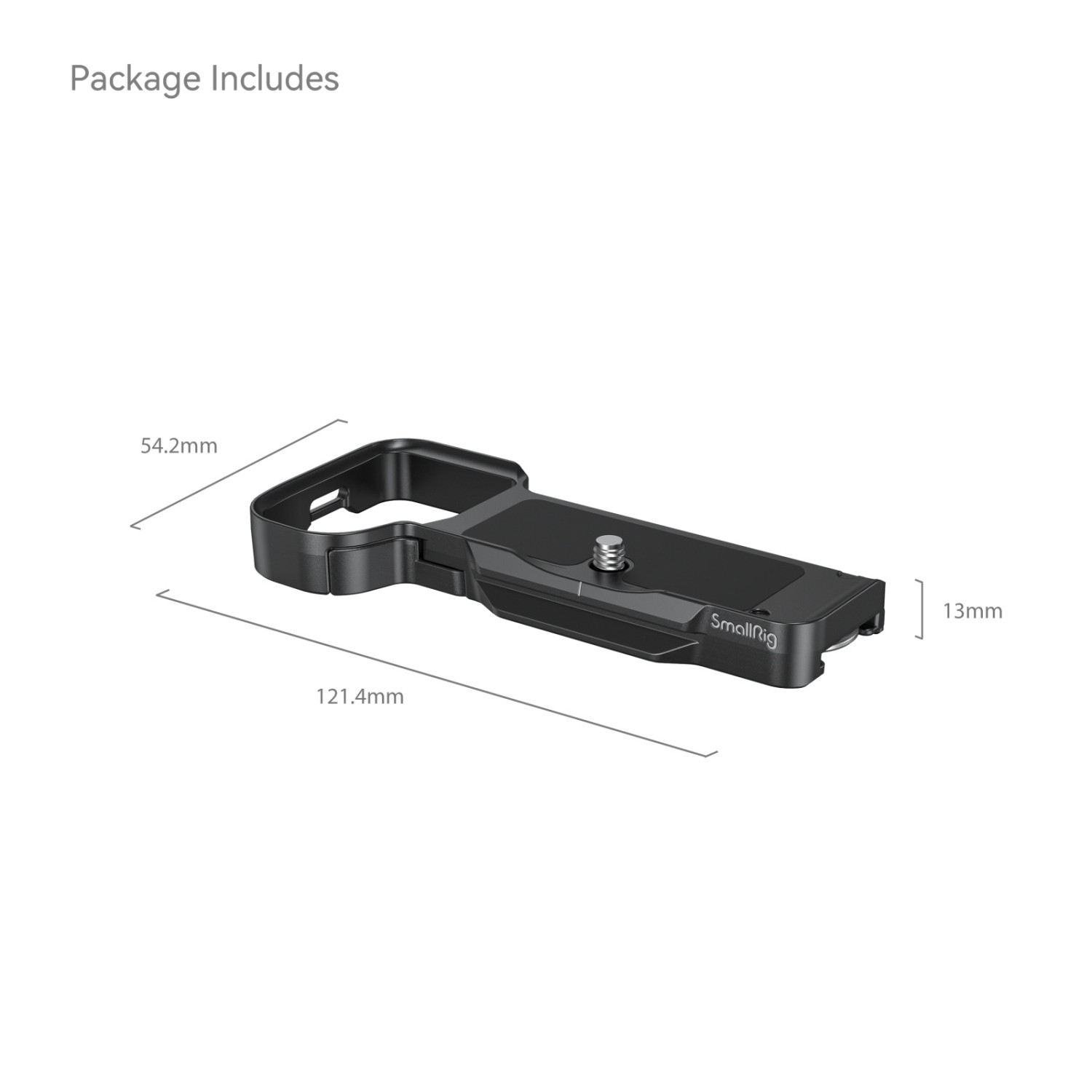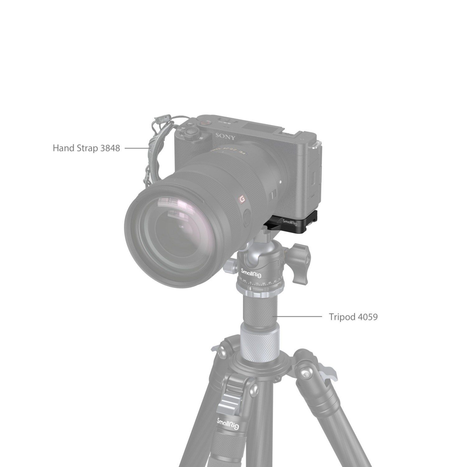 La placa base SmallRig para la Sony ZV-E1 4314 tiene como objetivo mejorar la experiencia de sujeción y proteger la cámara. La placa base fija la cámara Sony ZV-E1 mediante un tornillo de 1/4"-20 en la parte inferior y también está equipada con almohadillas que evitan arañazos y deformaciones. Su brazo de sujeción en la tapa de la batería se adapta mejor a la curvatura de la cámara y deja espacio para el meñique, lo que permite un agarre cómodo. En la parte inferior hay orificios con rosca de 1/4"-20 para conectar un minitrípode, una placa de fijación rápida Arca-Swiss para cambiar rápidamente entre grabar a mano alzada, con trípode y con estabilizador (DJI RS 2 / RSC 2 / RS 3 / RS 3 Pro) y una llave magnética para facilitar el desmontaje y el montaje.