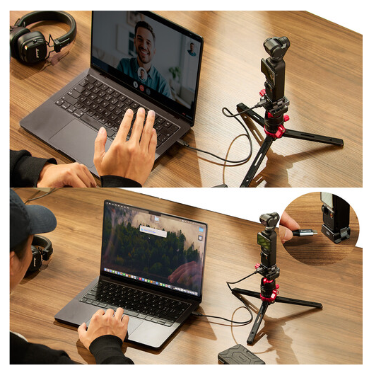 • Soporte abatible de 2 pines con revestimiento de silicona para una fijación segura de la Osmo Pocket 3 sin arañazos