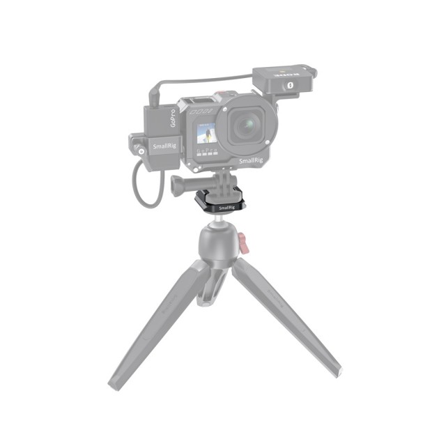 El adaptador SmallRig para correas con placa de fijación rápida Arca para cámaras GoPro APU2668 facilita el montaje de las correas GoPro en cabezales de trípode compatibles con Arca. Basta con introducir la correa lateralmente en la parte superior del adaptador hasta que encaje en su sitio. El adaptador cuenta en su parte inferior con una placa Arca estándar, lo que permite fijar la cámara GoPro a cualquier plataforma Arca. También está equipado con orificios roscados de 1/4"-20 y 3/8"-16, así como con orificios pasantes para el montaje de tornillos. Todo el adaptador está fabricado en aluminio anodizado resistente, pero tiene un diseño compacto y ligero.