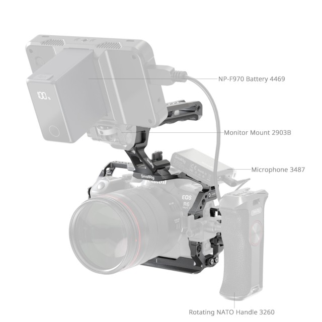 El kit SmallRig Cage Kit para Canon EOS R6 Mark II 5197 está diseñado para mejorar la fotografía a mano alzada y proporcionar una mayor portabilidad y ampliación de accesorios. El kit incluye una jaula, una abrazadera para cables USB-C y HDMI, y una cómoda empuñadura superior para transportar cómodamente la cámara y realizar tomas desde ángulos bajos.