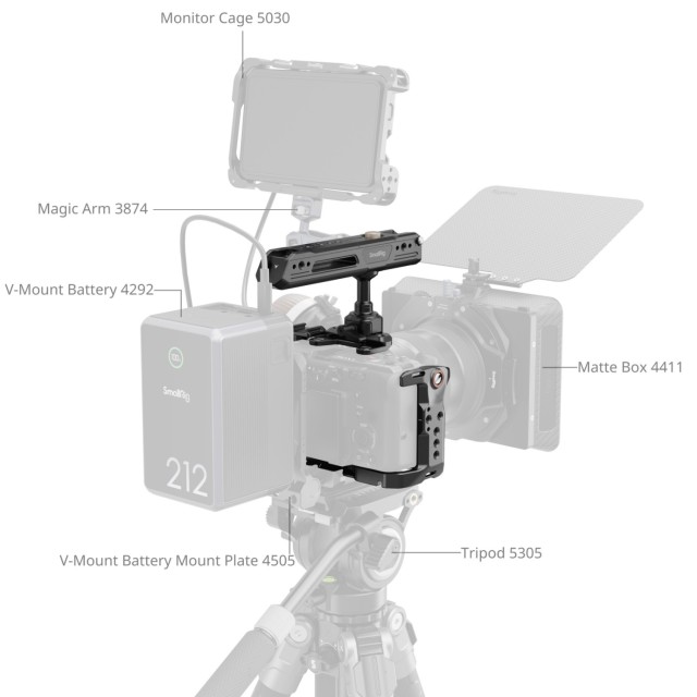 Barra NATO extraíble (placa superior): Compatible con la empuñadura superior Sony XLR o la empuñadura superior giratoria SmallRig (ID 4152) para un funcionamiento fluido del EVF