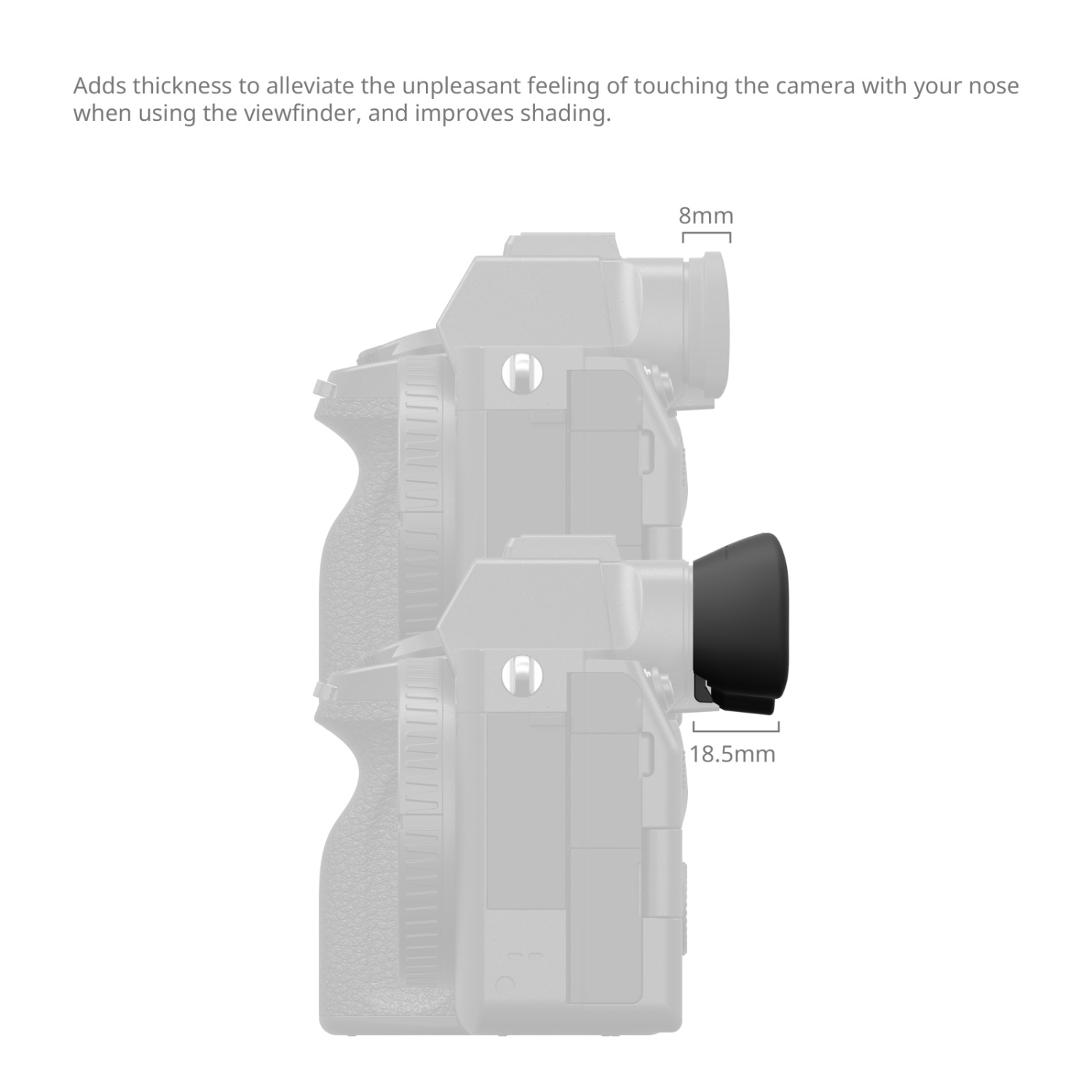 El ocular para visor de cámara SmallRig 5255, compatible con determinados modelos de la serie Sony Alpha 1 / Alpha 7 / Alpha 9, está diseñado para mejorar la experiencia visual al utilizar el visor electrónico (EVF). Sustituye la lente ocular original de la cámara, aumenta la profundidad y reduce significativamente la incomodidad causada por el contacto de la nariz con la cámara, lo que resulta especialmente beneficioso para los usuarios que no llevan gafas. Gracias a la suave almohadilla de silicona en la zona de contacto con los ojos, esta visera proporciona un ajuste cómodo y ceñido, al tiempo que bloquea eficazmente la luz difusa para una visibilidad excelente.