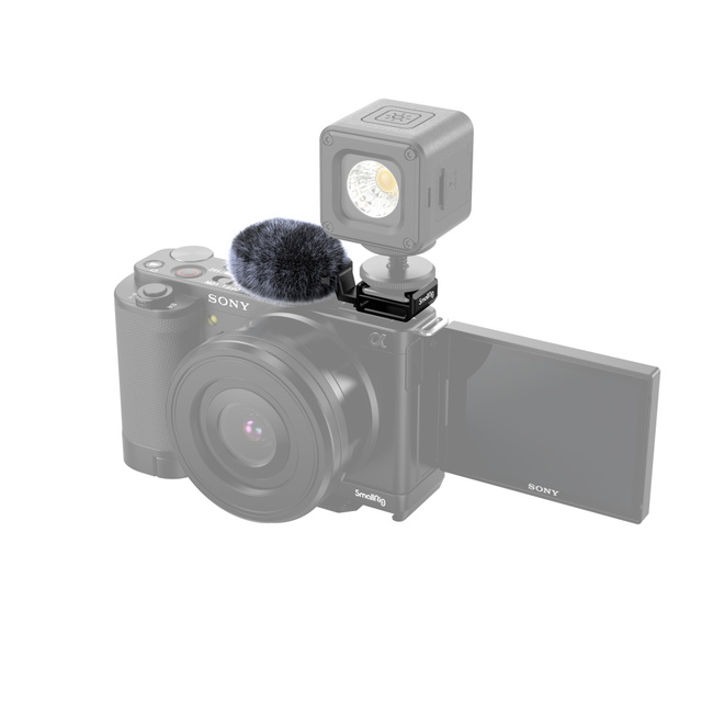 El adaptador SmallRig Cold Shoe con protector contra el viento para Sony ZV-E10 y ZV-1 3526 permite montarun protector frontal y una luz LED en la cámara. Resuelve el problema que se produce cuando la zapata está ocupada y no se pueden instalar accesorios tras colocar el protector frontal en la cámara. El adaptador de zapata fría se inserta en la zapata caliente de la cámara y está equipado con una almohadilla resistente a los arañazos en la parte inferior, que fija la cámara de forma segura. La zapata cold shoe de nailon de alta calidad ofrece mayor resistencia y durabilidad. El kit incluye una protección especial para el micrófono con piel sintética suave y una estructura interna reforzada que reduce eficazmente el ruido al grabar en exteriores. La zapata cold shoe también es compatible con el parabrisas original. El parabrisas blanco opcional 3530 está disponible por separado. El adaptador de zapata fría es compacto, ligero y fácil de transportar, y representa la solución más sencilla para los creadores de vlogs con las ZV-E10 y ZV-1.