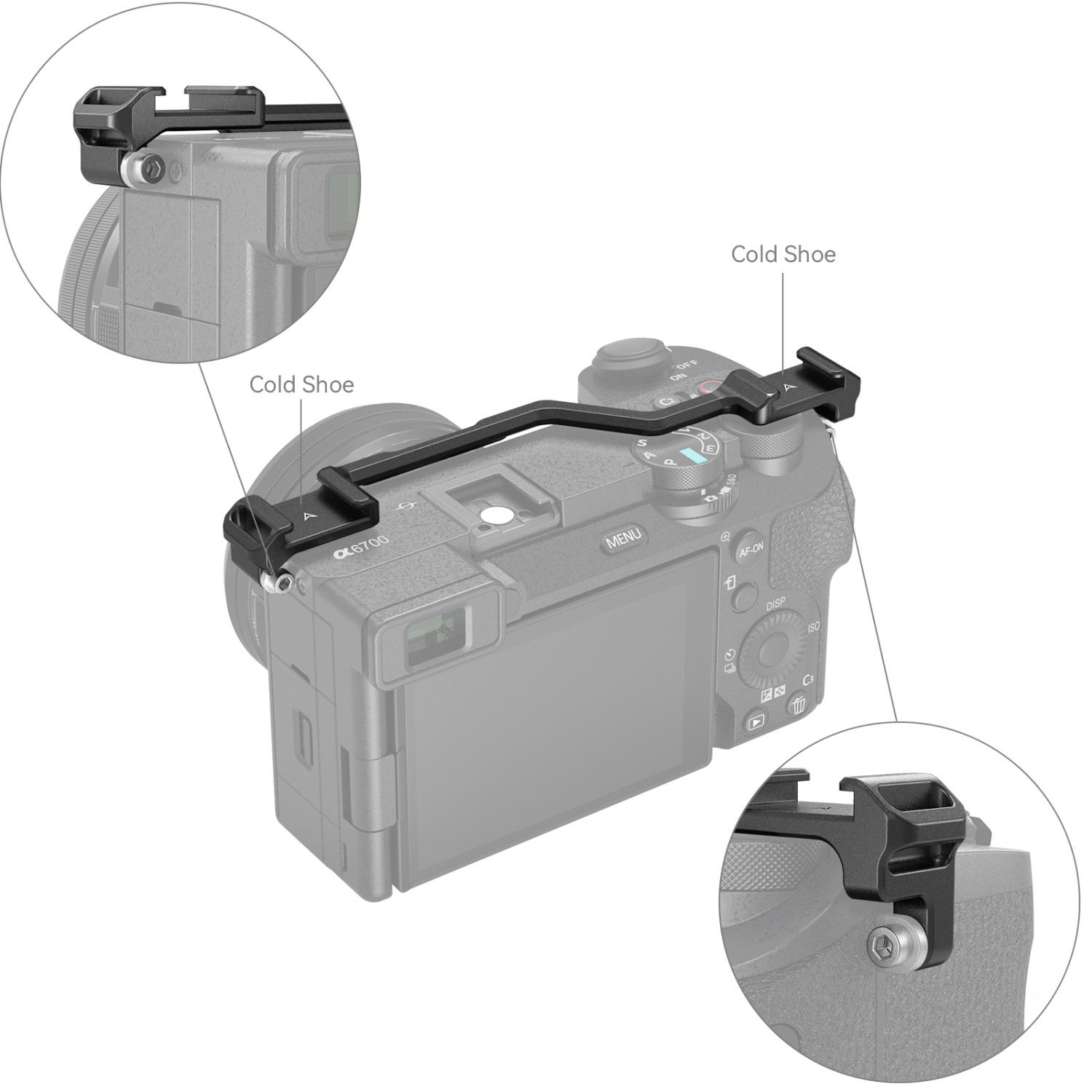 La placa de montaje SmallRig Dual Cold-Shoe para Sony Alpha 6700 4339 está diseñada para añadir soportes Cold Shoe para conectar micrófonos, luces LED de vídeo, etc. Se fija firmemente a la cámara mediante dos tornillos M2,5 y cuenta con orificios para la correa de hombro a ambos lados. La placa, que también ofrece acceso completo a la zapata caliente de la cámara, cuenta con dos soportes integrados para zapata fría que permiten conectar simultáneamente un micrófono y una luz LED de vídeo, así como con orificios adicionales para la correa de hombro. Es compacta y ligera, y resulta ideal para montarla en la cámara Sony A6700 durante la grabación de vlogs y otras situaciones.