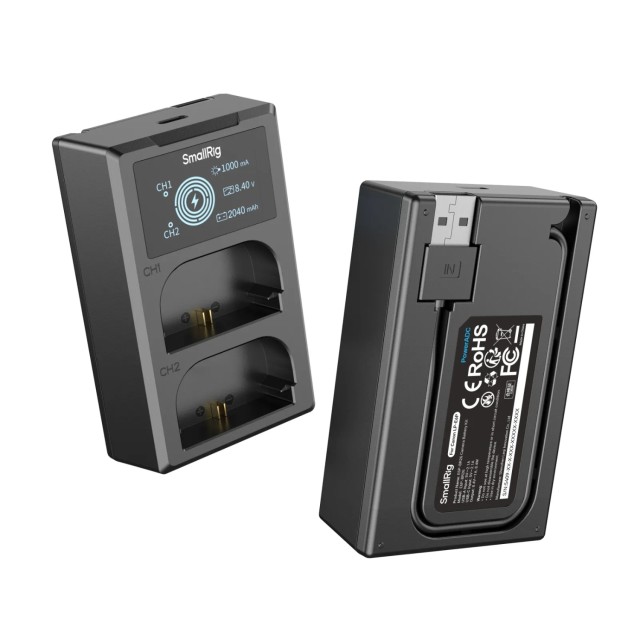 Cada batería tiene una potencia de salida real de 2520 mAh, lo que garantiza un tiempo de disparo más prolongado en trabajos exigentes. El cargador cuenta con dos ranuras independientes que permiten cargar simultáneamente dos baterías o una sola, lo que optimiza la eficiencia cuando se utilizan varias baterías. La pantalla LCD inteligente permite supervisar en tiempo real la corriente de carga, el voltaje de carga, el progreso de la carga y la potencia acumulada. Además, el cargador incluye puertos de entrada USB-A y USB-B, por lo que es compatible con adaptadores de red, cargadores para coche y baterías externas, lo que ofrece opciones de carga versátiles.