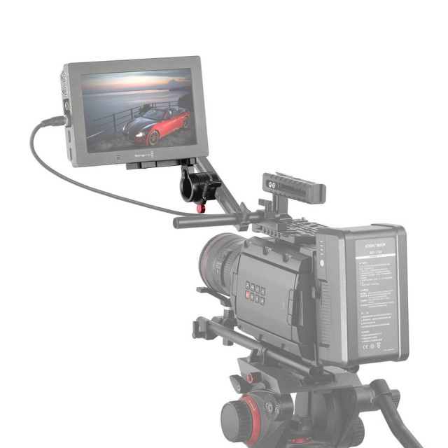 El soporte SmallRig EVF Mount 1594 se puede montar en un riel NATO integrado o en un riel NATO 1195 de la jaula de la cámara por un extremo, mientras que por el otro extremo permite acoplar un monitor o un EVF mediante un tornillo de 1/4”. Cuenta con un ajuste de amortiguación de 360° y permite un ajuste rápido y ángulos de visualización flexibles. Incorpora una almohadilla de goma en la parte superior para evitar arañazos accidentales.