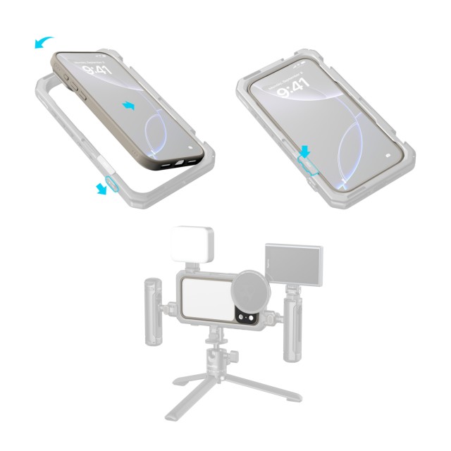 Está equipada con un sistema de liberación rápida de la placa trasera del objetivo, que incluye placas traseras de objetivo T-Mount y adaptadores de filtro acoplables de 67 mm para un cambio rápido de objetivos y filtros magnéticos. La funda está fabricada en TPU blando, lo que proporciona un agarre cómodo y, al mismo tiempo, una protección básica de las esquinas y los bordes del teléfono.