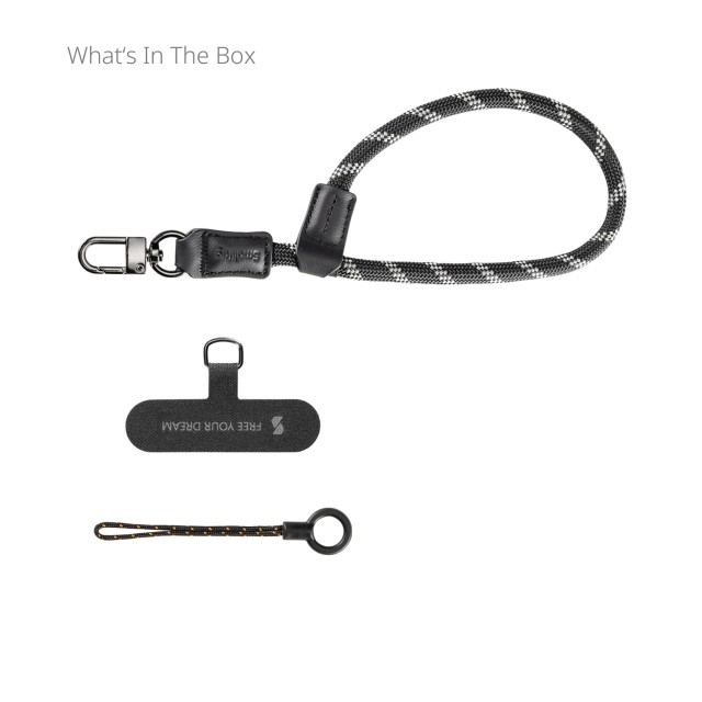 La correa de muñeca SmallRig FilMov Phone Wrist Strap —una combinación de funcionalidad, estilo y respeto por el medio ambiente— cuenta con una longitud ajustable y un gancho metálico resistente para colgar el teléfono o accesorios como AirPods, llaves y llaveros. Su instalación sin herramientas ofrece una comodidad sin esfuerzo en el uso diario.