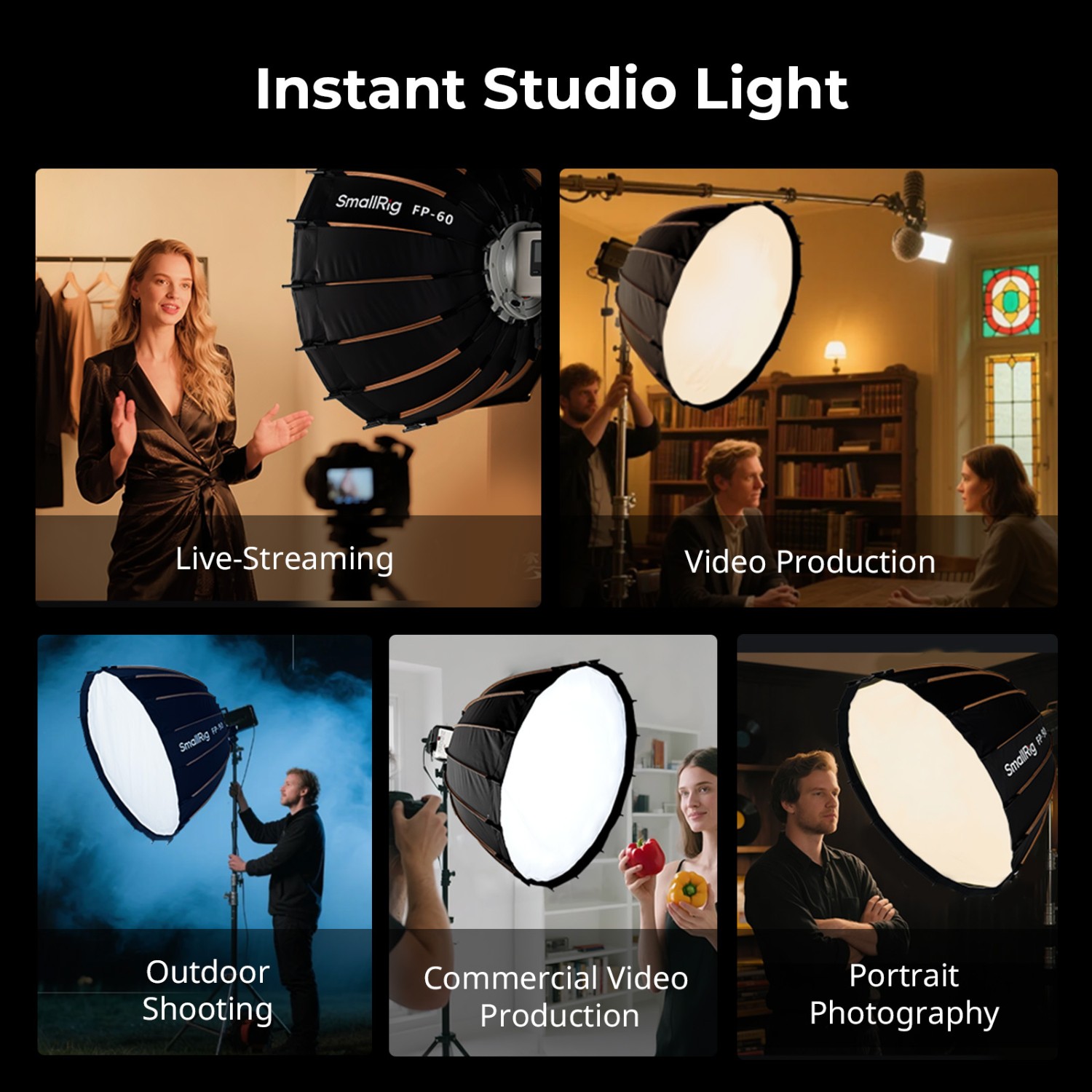 El SmallRig FP-60 es un softbox parabólico plegable de montaje rápido diseñado para la iluminación profesional. Cuenta con un diseño mejorado del paraguas que permite un despliegue rápido, una difusión de doble capa para una luz suave y uniforme, y un acoplamiento Bowens estándar que garantiza una amplia compatibilidad…