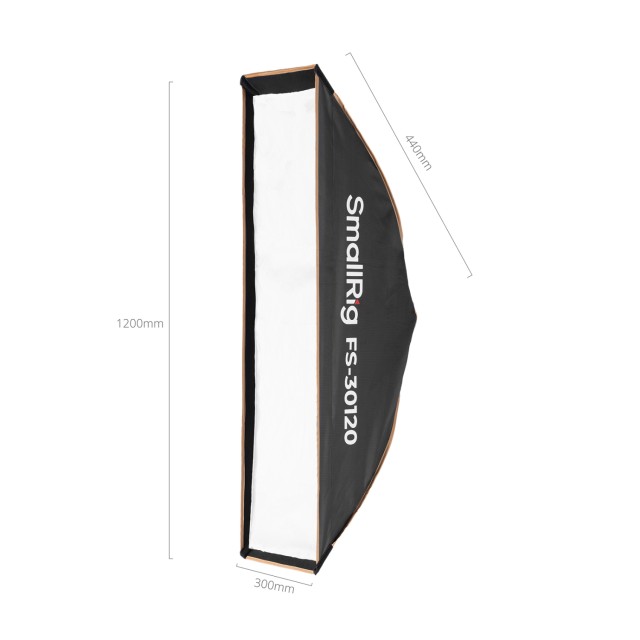 El SmallRig FS-30120 Quick-Setup Folding Strip Softbox 5370 es un softbox tipo tira de 30 x 120 cm / 11,8 x 47,2 pulgadas con un soporte Bowens universal. Es compatible con la serie SmallRig RC 220 Pro y otras fuentes de luz con soporte Bowens disponibles en el mercado. El diseño de montaje rápido del paraguas permite una fácil instalación y desmontaje en un solo paso, lo que garantiza una experiencia de usuario sin complicaciones.