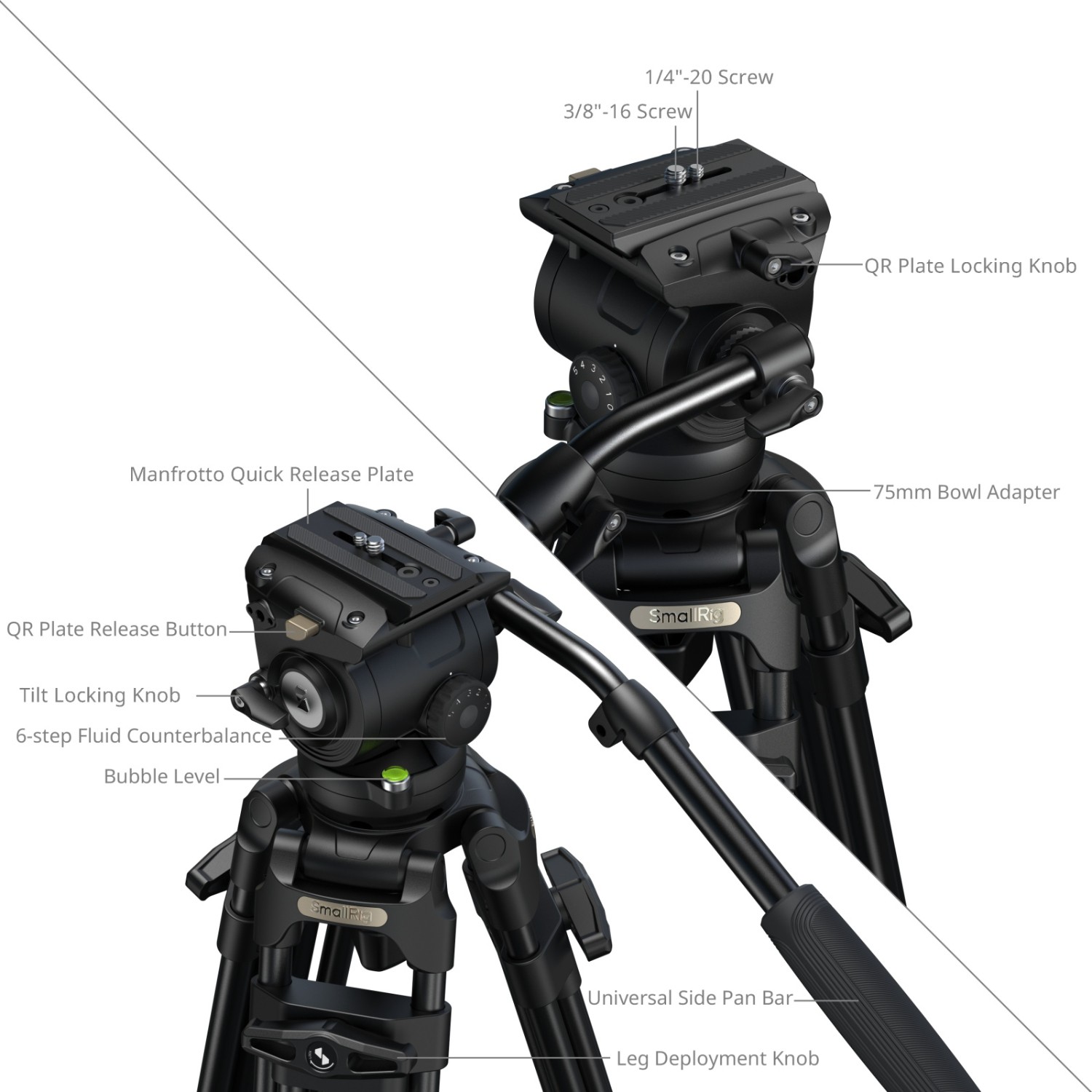 El trípode SmallRig Heavy-Duty Fluid Head AD-01 3751B está diseñado para la grabación