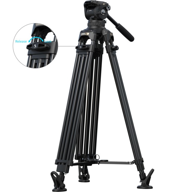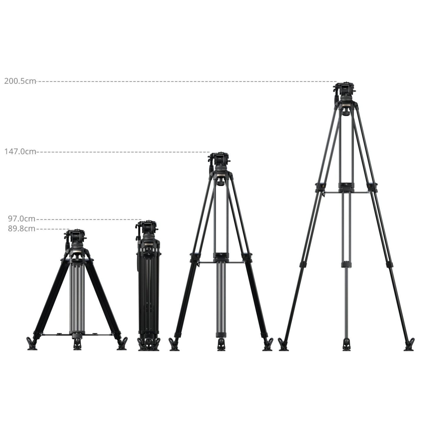 El trípode FSD18 está fabricado en aleación de aluminio de alta calidad y representa una solución ligera pero robusta para aplicaciones de videografía exigentes, al tiempo que ofrece un control preciso y flexibilidad para uso profesional.