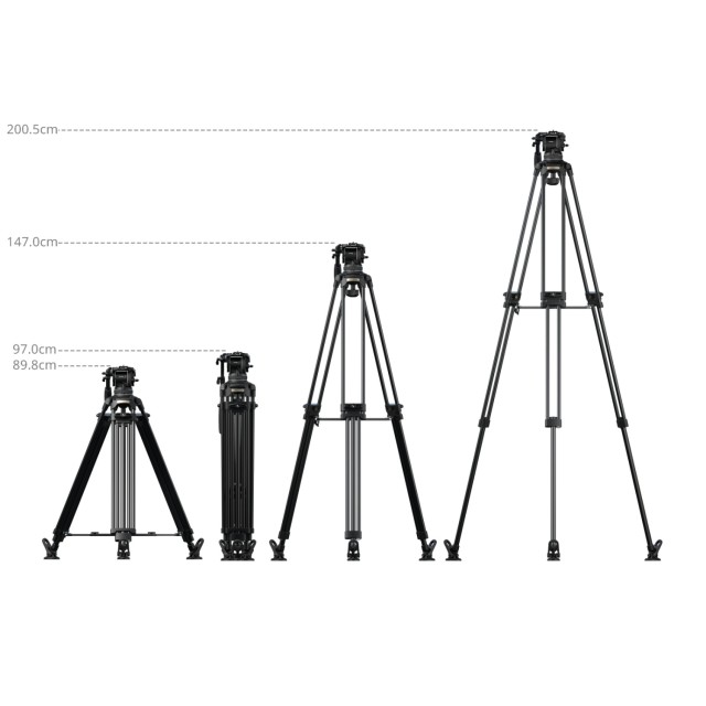 En combinación con el cabezal fluido, el trípode ofrece un sistema de equilibrio de 7 niveles y un control independiente de 4 niveles de amortiguación de la inclinación y el giro. El mecanismo de equilibrio admite cargas de 4 kg a 10 kg (8,8–22 lb), mientras que el cabezal soporta un peso operativo seguro de 15 kg (33,1 lb) y una carga útil máxima de 17 kg (37,5 lb). Su altura de trabajo oscila entre 89,8 cm y 200,5 cm (35,4–78,9 pulgadas), lo que permite tanto tomas desde ángulos elevados como movimientos cinematográficos fluidos.