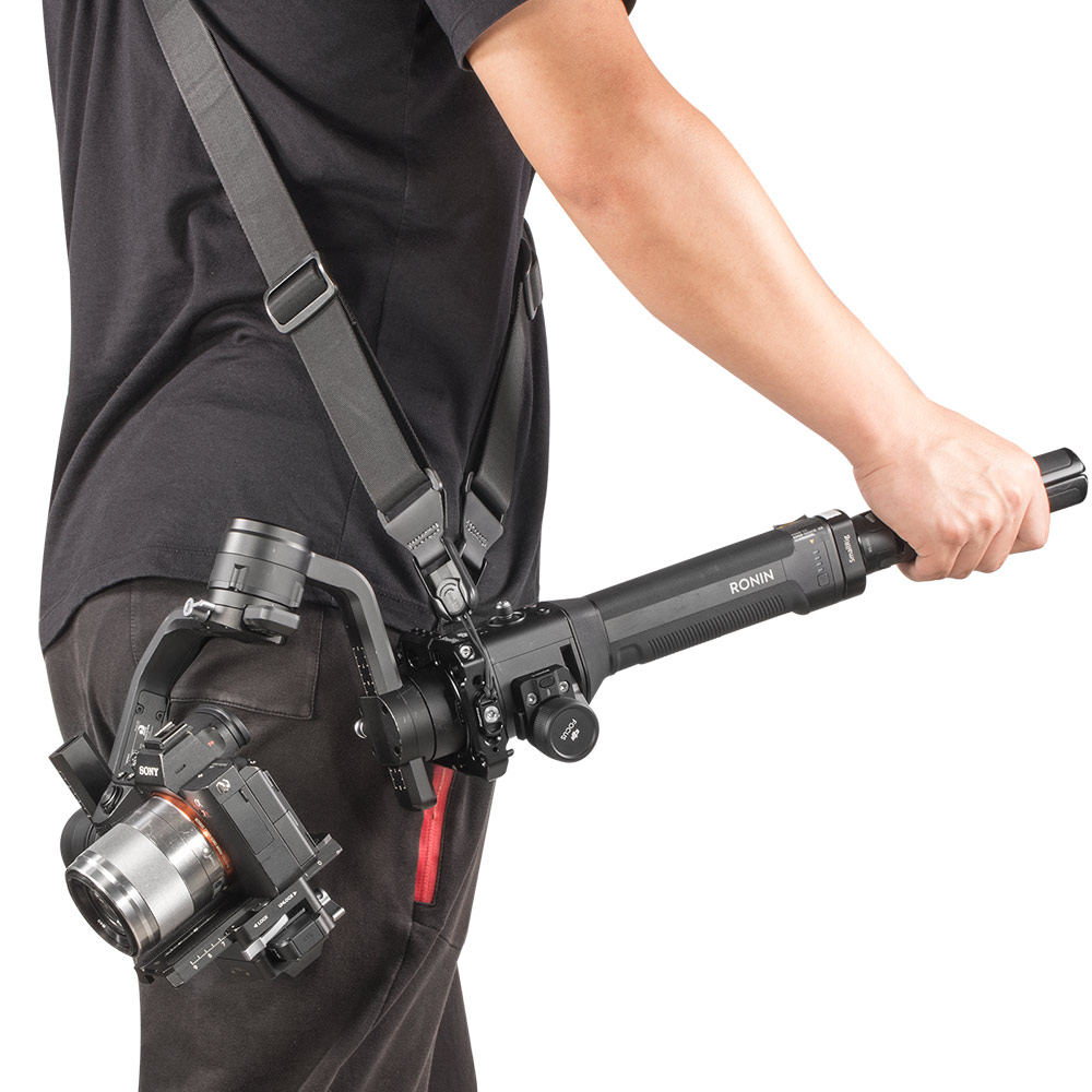 Se puede llevar como correa, correa para el cuello o para el hombro. La correa está equipada con una banda de nylon de doble capa y una almohadilla ergonómica para el hombro rellena de espuma viscoelástica, que está moldeada térmicamente, ayuda a aliviar la presión y el dolor en los hombros y el cuello causados por grabaciones prolongadas y proporciona una mayor comodidad al llevarla. La longitud de la correa es ajustable, con una longitud máxima de 160 cm y una mínima de 110 cm, para adaptarse a personas de diferentes estaturas. El exclusivo sistema Rapid Link permite acoplar y desacoplar rápidamente la correa del gimbal y proporciona una forma más segura de transportarlo.