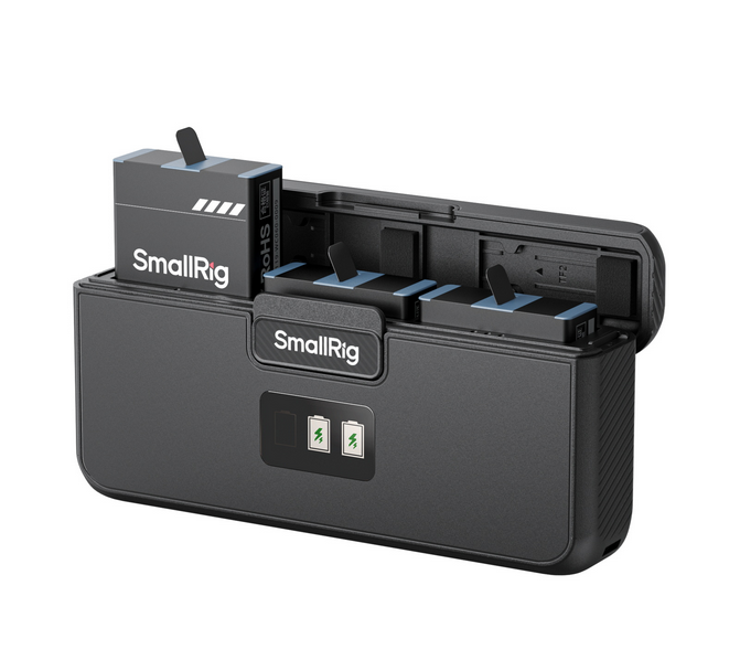 El kit de baterías SmallRig GoPro Camera Battery Kit 4565 incluye 3 baterías de alta capacidad de 1720 mAh y un estuche de carga con carga rápida PD de 27 W, una pantalla TFT en color para visualización en tiempo real y un compartimento para tarjetas de memoria, lo que garantiza una mayor autonomía para las cámaras GoPro HERO9, HERO10, HERO11 y HERO12.