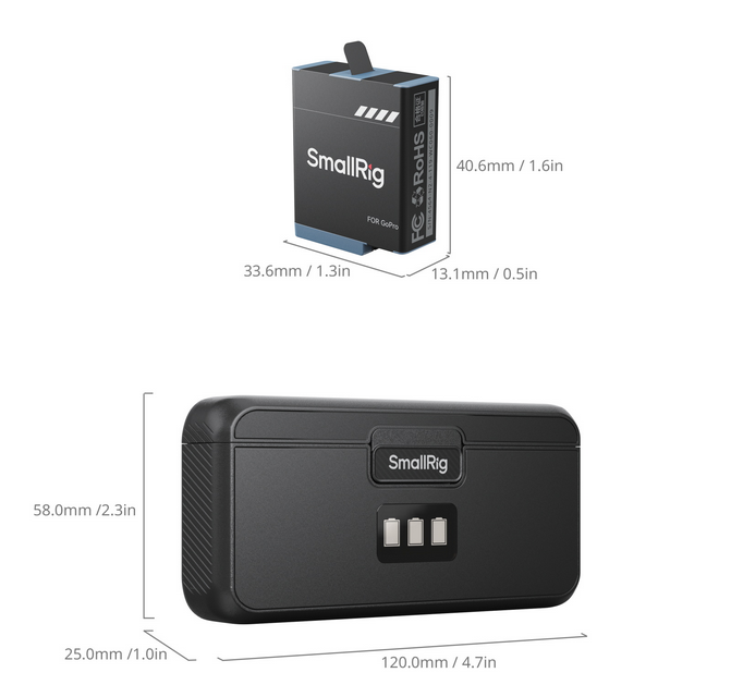 • Compatibilidad con GoPro: Totalmente optimizado para GoPro HERO9, HERO10, HERO11 y HERO12 con visualización precisa del nivel de carga de las baterías.