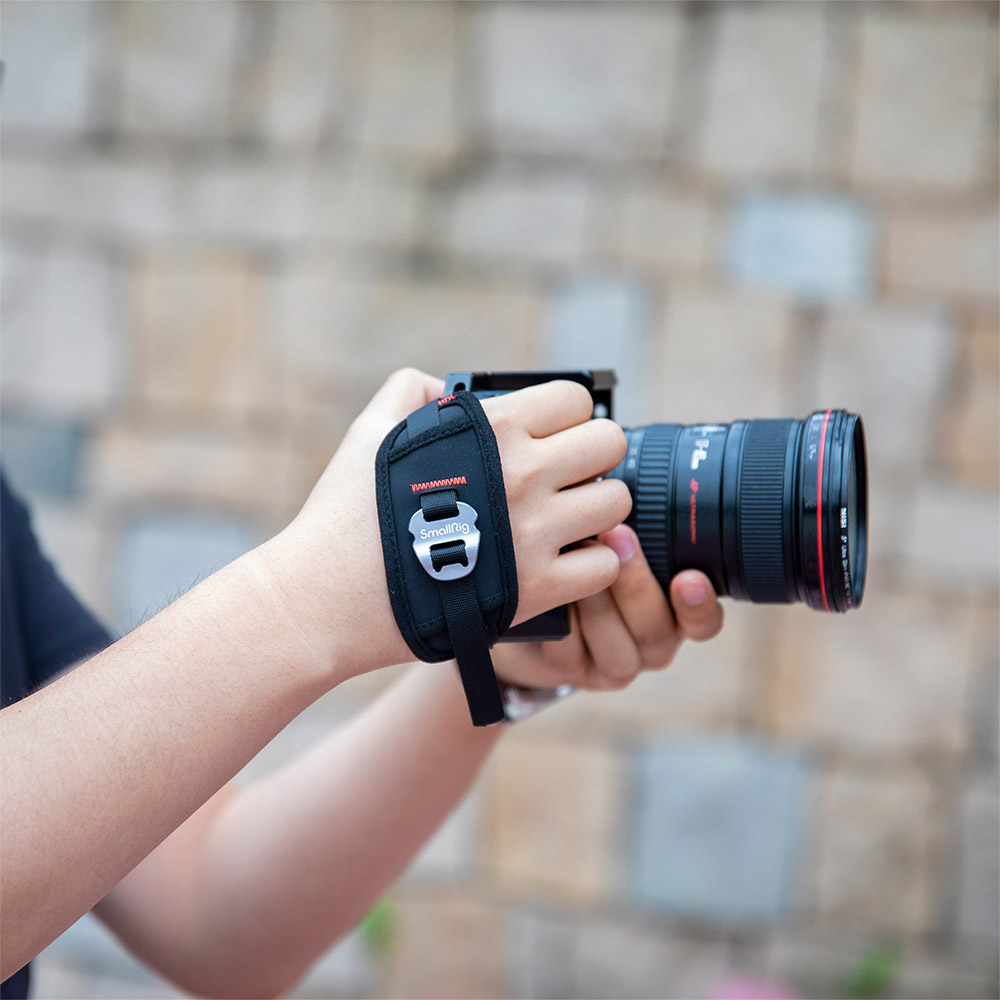La correa de mano SmallRig PAC2456 protege eficazmente tu cámara y, en cierta medida, aumenta la estabilidad al grabar cuando se utiliza una jaula para cámara o una empuñadura lateral externa para grabar a mano alzada. La anchura de su correa de nailon es de 12 mm y es compatible con jaulas para cámara y empuñaduras laterales externas que tengan un orificio para la correa en la parte superior e inferior y cuya anchura no supere los 12 mm, como la jaula SmallRig para Blackmagic Design Pocket Cinema Camera 4K y 6K 2203B, SmallRig Aluminum Universal Side Handgrip HSS2425, etc.