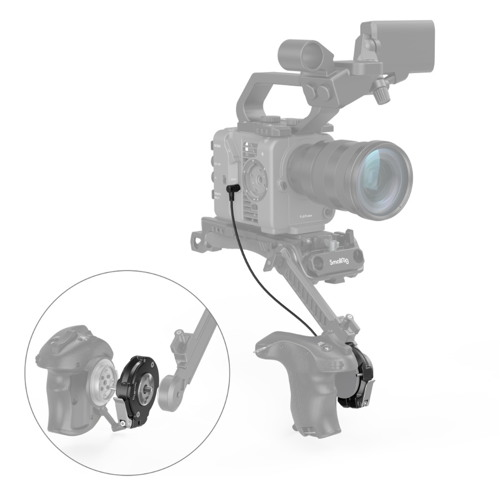El adaptador SmallRig Handgrip Rosette para SONY FX6 3403 permite cambiar la posición de la empuñadura original de la SONY FX6. Fija rápidamente la empuñadura mediante una palanca de leva y no impide su giro. Gracias a su diseño integrado antideslizamiento, es seguro y estable; la marca de bloqueo garantiza una instalación correcta. Además, el tornillo M6 incluido es compatible con el adaptador opcional Arri Rosette para fijar la empuñadura al estabilizador. Al utilizar kits de hombro, puede utilizar el adaptador para cambiar la posición de la empuñadura mediante el brazo extensible opcional 1879. El paquete también incluye el cable de extensión LANC 3404, que, tras conectar la cámara a la empuñadura, permite utilizar el disparador de la empuñadura original.