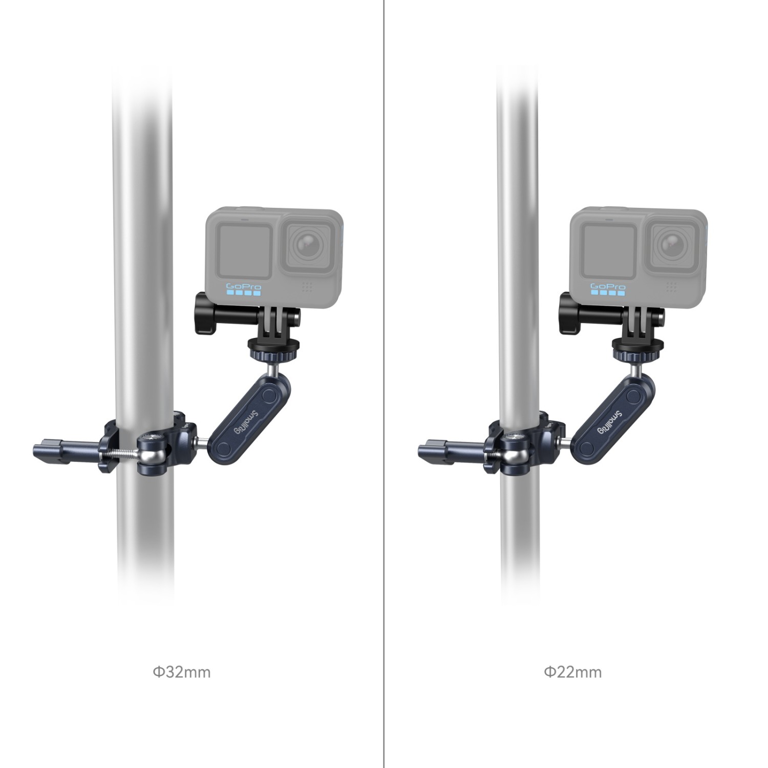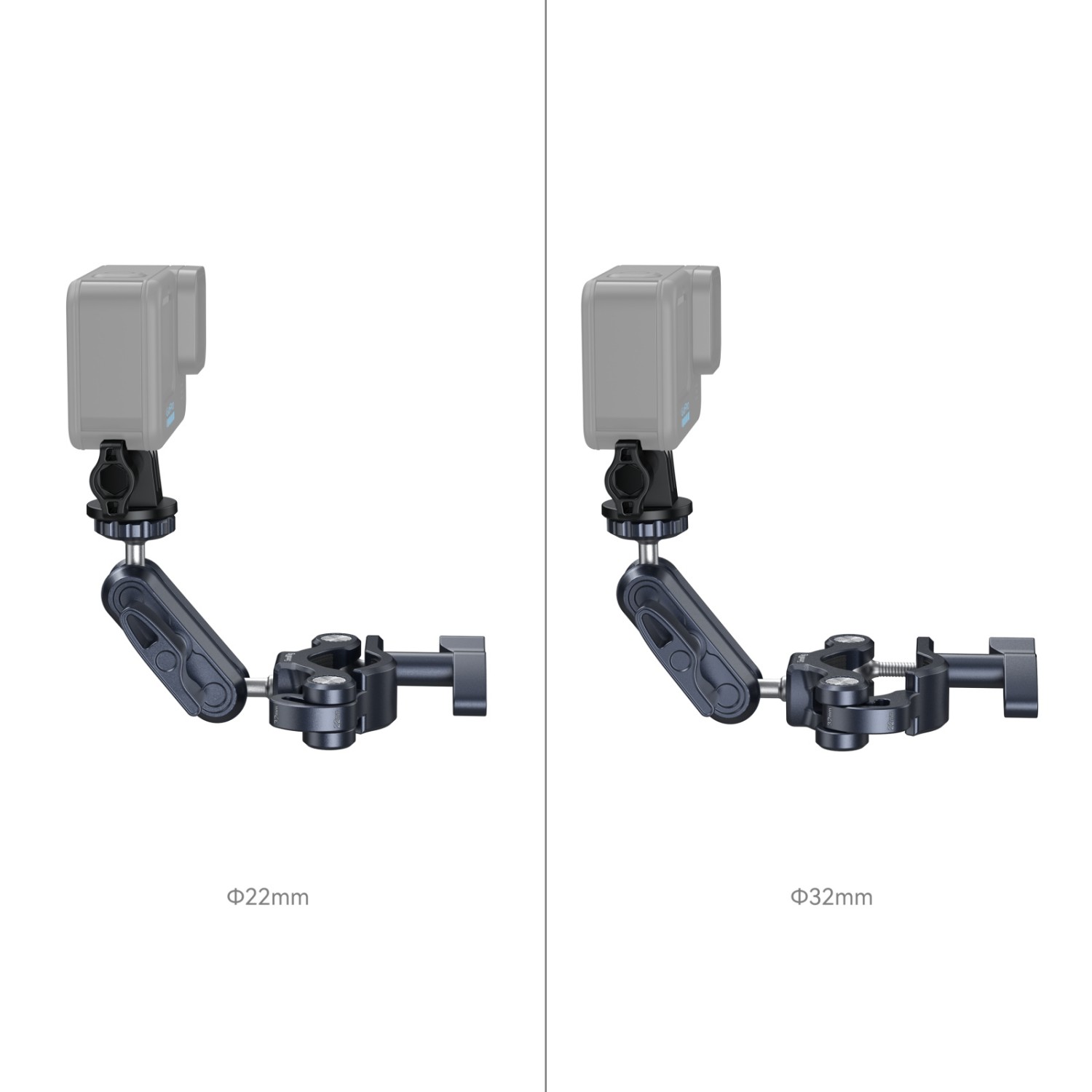 El soporte para manillar SmallRig 4191 para cámaras de acción consta de un soporte para el manillar y un soporte para la cámara de acción. Está fabricado en aleación de aluminio aeronáutico mecanizado con CNC y acero inoxidable para mayor resistencia y durabilidad. Este producto, altamente compatible, admite todos los manillares con un diámetro de entre 22 mm y 32 mm y cuenta con dos distancias de sujeción que se adaptan perfectamente a los manillares estándar de ⌀22 mm y ⌀31,8 mm. Basta con ajustar la rueda dentada para aumentar la superficie de contacto y garantizar así una sujeción segura y la protección de la cámara mientras se circula en bicicleta.