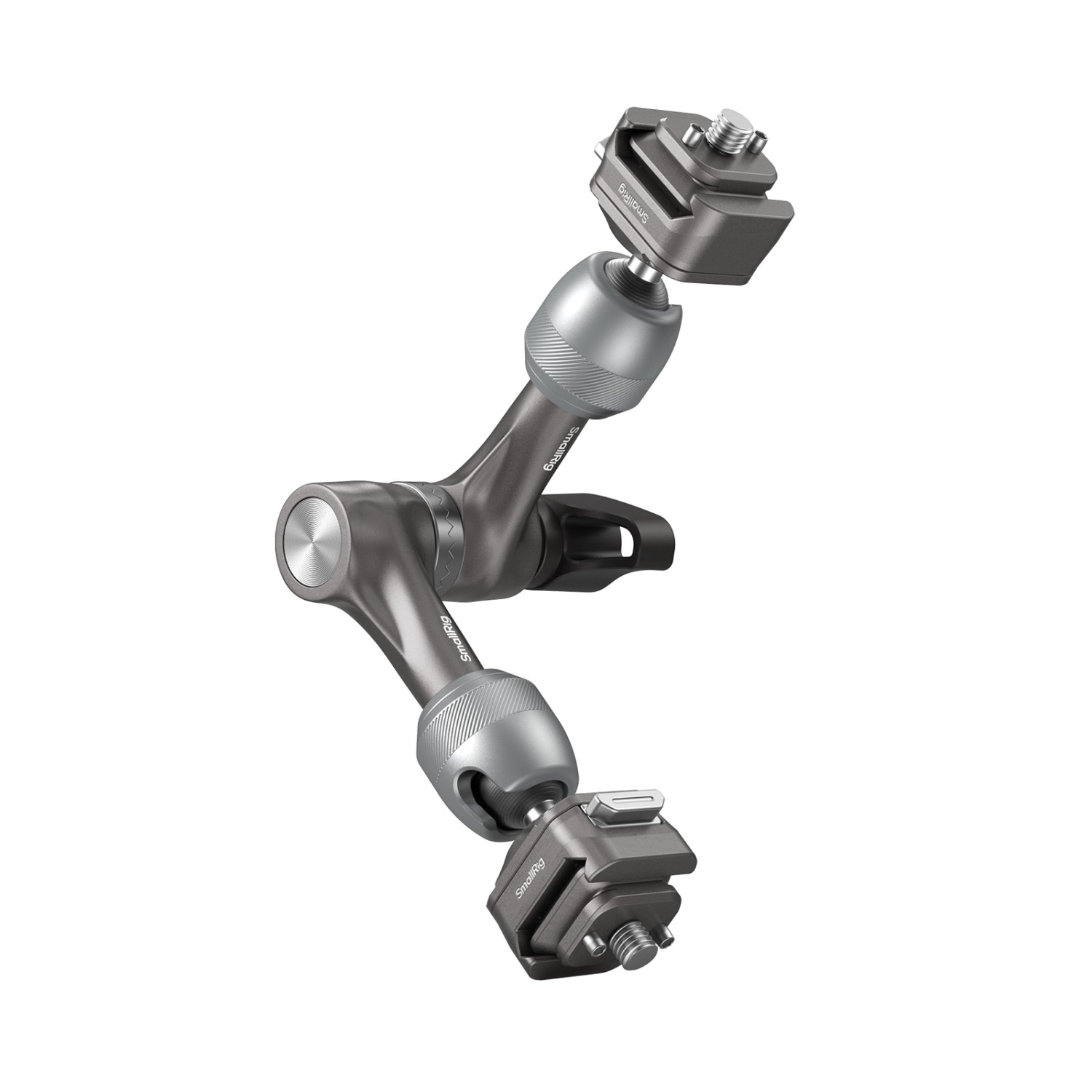 El brazo de fijación rápida SmallRig HawkLock H21 Rosette Magic Arm (7") 4490 está fabricado en aleación de aluminio aeronáutico y acero inoxidable. Cuenta con un diseño exclusivo y patentado de deslizador de fijación rápida con pasadores de rodadura internos que permiten un bloqueo vertical seguro. El diseño con dos tornillos de fijación rápida de 1/4"-20 permite la fijación externa de monitores, luces de vídeo, micrófonos, teléfonos inteligentes, iPads, cámaras de acción y otros dispositivos.