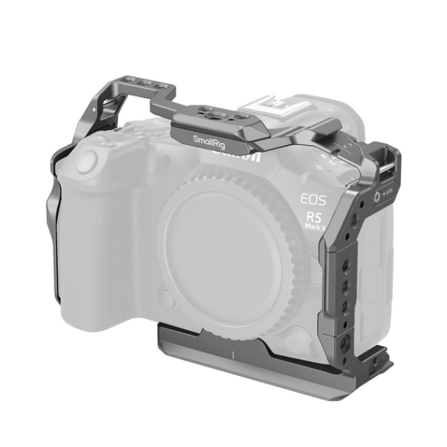 La jaula de montaje rápido SmallRig HawkLock para la Canon EOS R5 Mark II mejora la experiencia fotográfica gracias a una fijación eficaz de los accesorios, una protección resistente y una compatibilidad versátil.