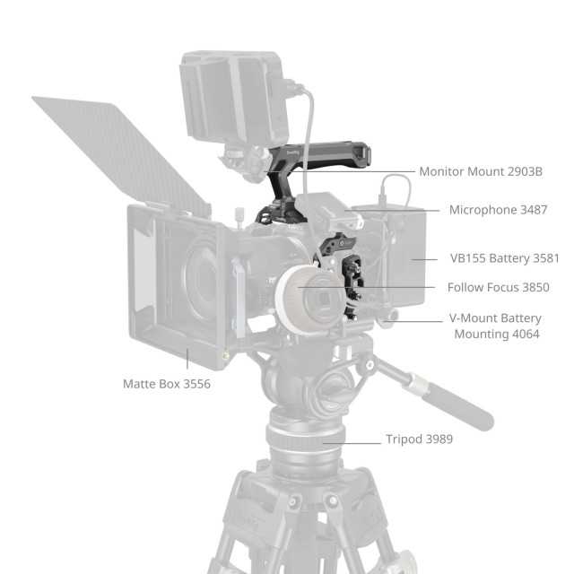 El kit cuenta con una interfaz de fijación rápida HawkLock integrada para un montaje rápido y seguro. Incluye una barra de fijación rápida NATO H21, un soporte de fijación rápida para placa fría H18, una placa de fijación rápida Arca-Swiss H38, orificios roscados de 1/4"-20, orificios de posicionamiento de 1/4"-20, orificios roscados de 3/8"-16, orificios de posicionamiento ARRI de 3/8"-16, soportes de zapata fría, rieles NATO, interfaz QD, orificios para correas y otros accesorios para conectar monitores, micrófonos, trípodes, sistemas de enfoque automático, empuñaduras y otros accesorios para mejorar la creación de contenido de vídeo en diversos escenarios.