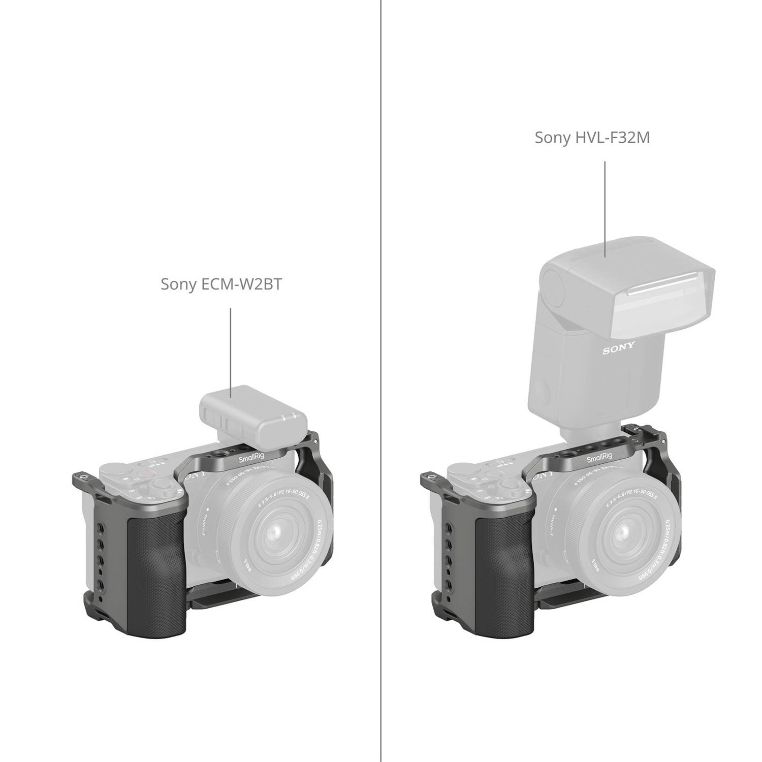 El kit de jaula de fijación rápida SmallRig HawkLock para Sony ZV-E10 II 4949 está diseñado para ofrecer una solución para el montaje de accesorios adicionales, proteger el cuerpo de la cámara y asegurar el puerto HDMI. El kit de jaula incluye la jaula y la abrazadera HDMI. El sistema patentado de fijación rápida HawkLock incluye soportes para zapata fría, rieles NATO y una placa de fijación rápida Arca-Swiss, lo que facilita un deslizamiento suave y un bloqueo automático al combinarlo con los accesorios del ecosistema HawkLock.