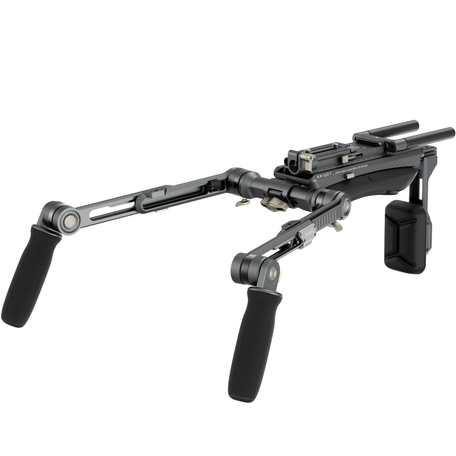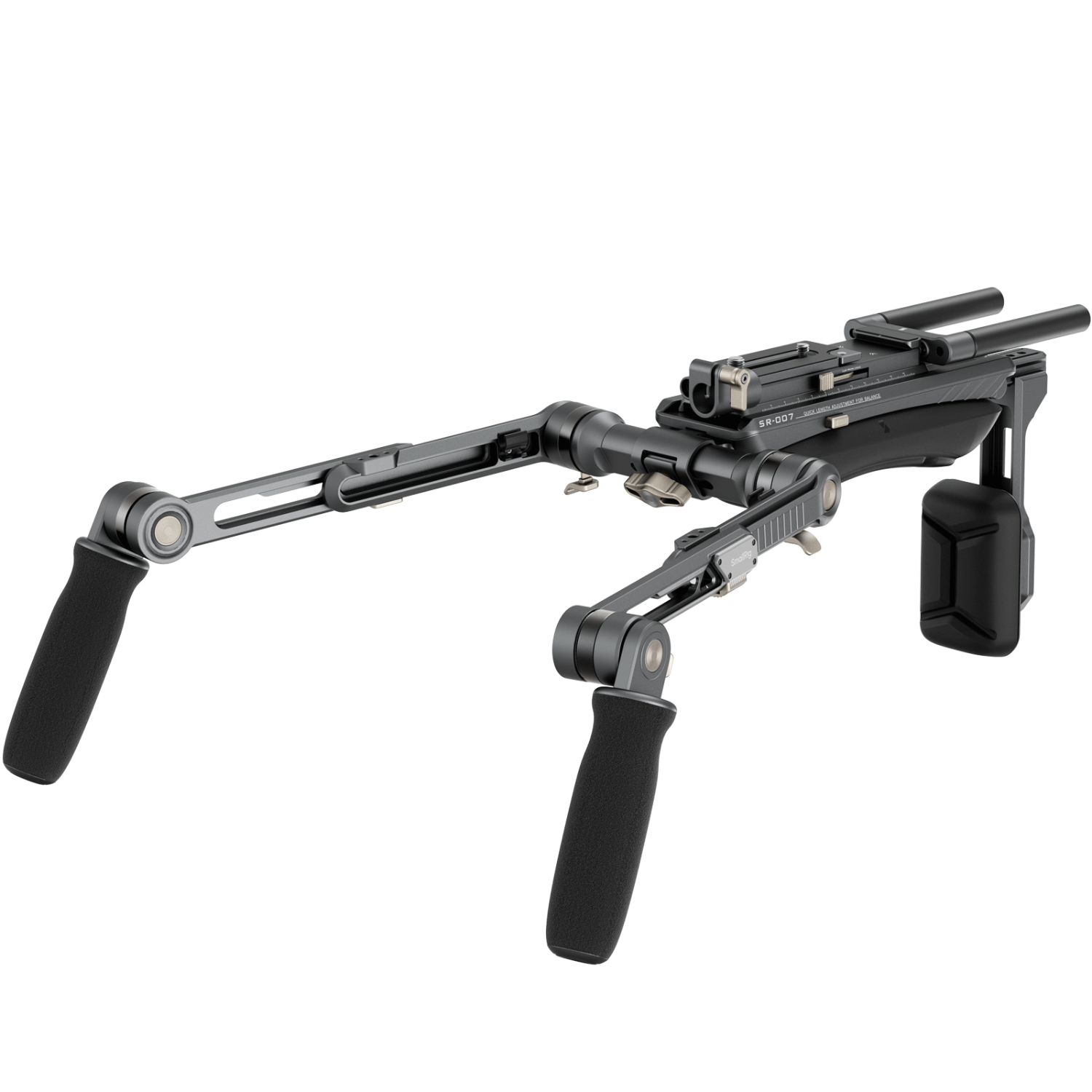 El SmallRig HawkLock Shoulder Rig SR007 Pro 4181 está diseñado para grabar eficazmente sobre el hombro con mayor comodidad y confort. Su innovador diseño permite un ajuste rápido en cuestión de segundos. El kit Shoulder Rig cuenta con empuñaduras ergonómicas de textura suave que proporcionan un agarre cómodo y facilitan el giro de 360°. El eje de conexión de los brazos extensibles se puede ajustar horizontalmente para un control optimizado, mientras que las almohadillas simplificadas para los hombros y la espalda proporcionan un apoyo excepcional. La almohadilla dorsal se ajusta hasta un ángulo de 90° para adaptarse perfectamente a cualquier ángulo de disparo, y la placa de fijación rápida permite ajustar fácilmente la parte delantera del brazo para un equilibrio rápido.