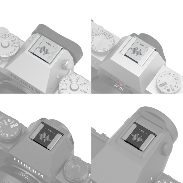 La tapa para zapata SmallRig para cámaras FUJIFILM (negra) 4698 está diseñada para proteger los contactos de la zapata de la cámara y realzar su aspecto retro. Se instala o retira fácilmente insertándola o extrayéndola de la interfaz superior de la zapata de la cámara. La parte inferior de la cubierta está equipada con una almohadilla de silicona blanda que evita que se raye la zapata. Gracias a tres elementos de diseño fundamentales, esta cubierta captura la esencia de la marca FUJIFILM: la huella de la onda sonora «FUJIFILM», el año de fundación de la empresa FUJIFILM —«1934»— y los contornos en colores a juego que se funden a la perfección con el cuerpo de la cámara. Esta cubierta para la zapata, fabricada mediante un proceso de anodizado de aleación de aluminio, ofrece una experiencia táctil y visual de primera clase.