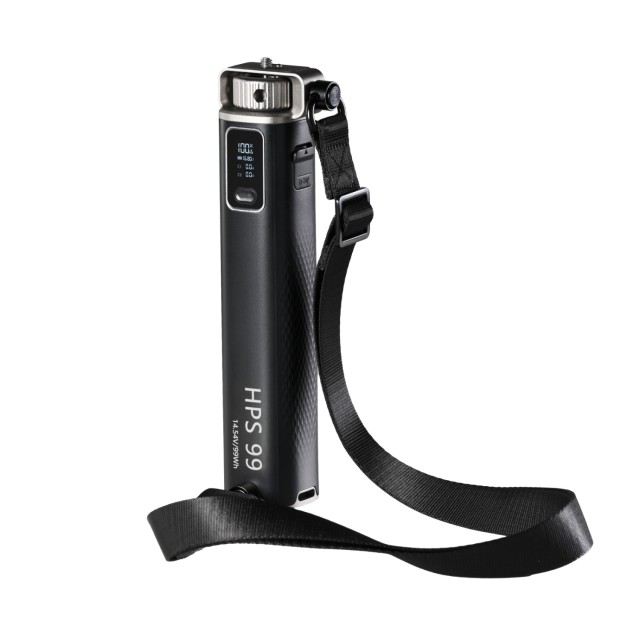 El SmallRig HPS99 esun kit de batería portátil con carga y descarga rápidas de hasta 100 W. Cuenta con dos puertos USB-C y un puerto D-Tap, lo que le permite alimentar varios dispositivos a la vez. Su diseño ergonómico, la pantalla que muestra el estado actual de la batería y la nueva correa para el hombro con clip lo convierten en la solución portátil ideal para los creadores.