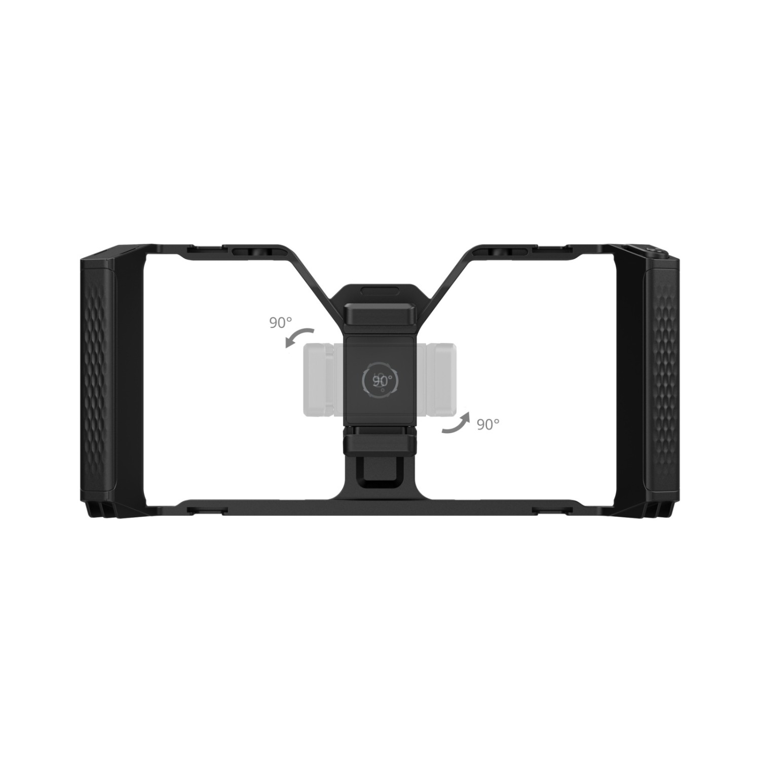Su diseño ergonómico garantiza un agarre cómodo y estable y permite conectar rápidamente el teléfono. Varios orificios con rosca de 1/4"-20 y soportes para zapata fría facilitan la conexión de diversos accesorios, como empuñaduras externas, trípodes, micrófonos y luces LED, lo que mejora la calidad de la producción.